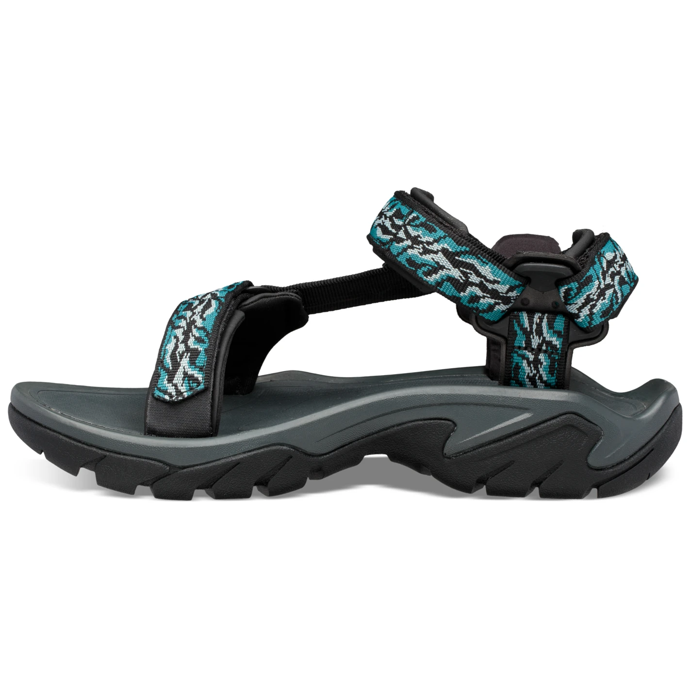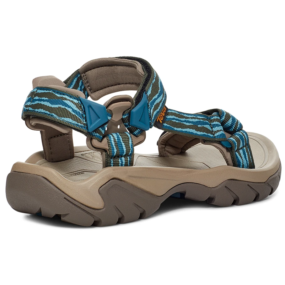Sandali da donna Teva La Terra Fi 5 Universal è una scarpa comoda e leggera adatta a camminare sull'acqua. La punta aperta impedisce la ritenzione idrica. I cinturini in velcro imbottiti e completamente regolabili mantengono la scarpa perfettamente sul piede e l'imbottitura della fibbia previene vesciche e bolle. Inoltre, il trattamento antimicrobico allo zinco Microban® riduce al minimo gli odori anche in caso di uso prolungato. La suola in gomma più alta, con rivestimento Spider Original, garantisce un'ottima aderenza sul bagnato e il massimo contatto con la superficie. Le scarpe possono essere utilizzate per passeggiare in città o per un trekking più lungo