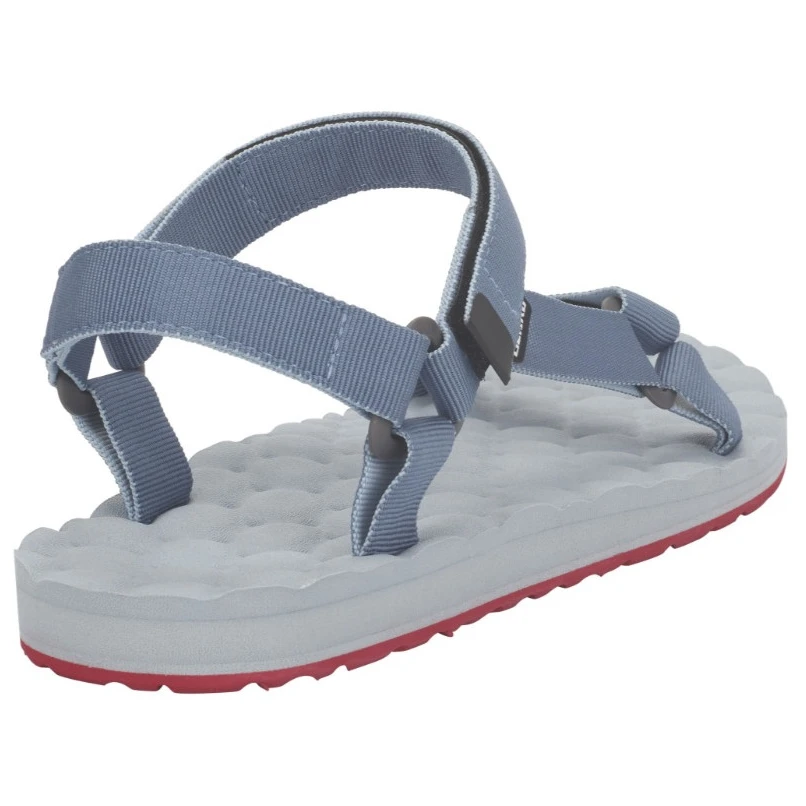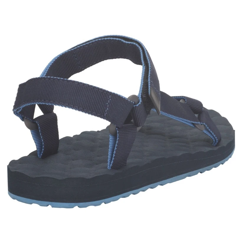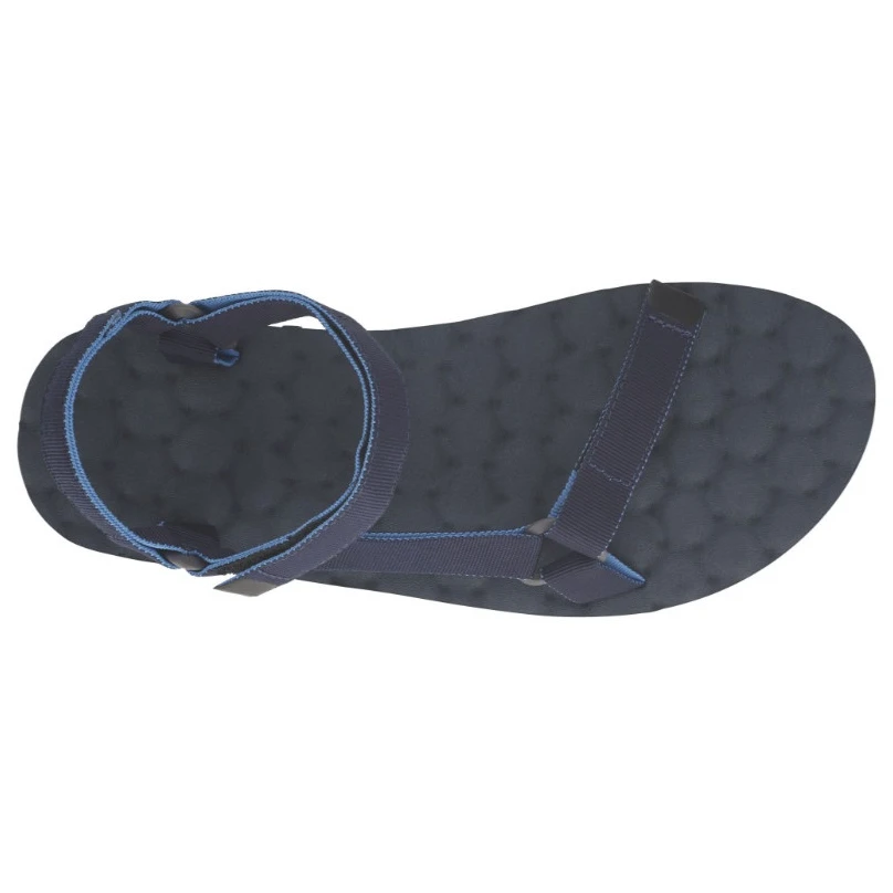 I cinturini dei sandali sono cuciti in morbido tessuto e realizzati con materiale riciclabile. I cinturini sono fissati con velcro sulla punta, sulla caviglia e sul tallone. Il vantaggio dei sandali è la suola antiscivolo, che offre un'ottima aderenza.