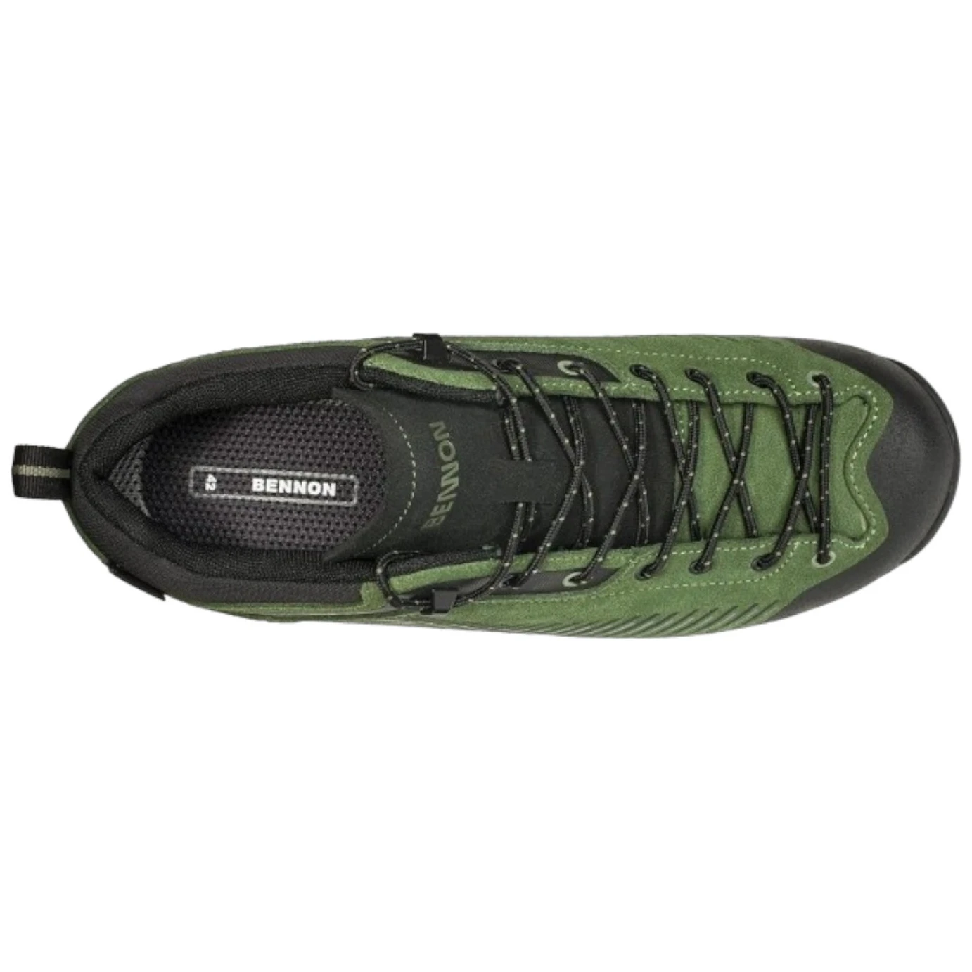 Scarpe outdoor Bennon PEAK Khaki Low con membrana REGI-TEX®, suola Vibram® e tomaia in crosta di vacchetta per comfort durante le escursioni e l'uso quotidiano.