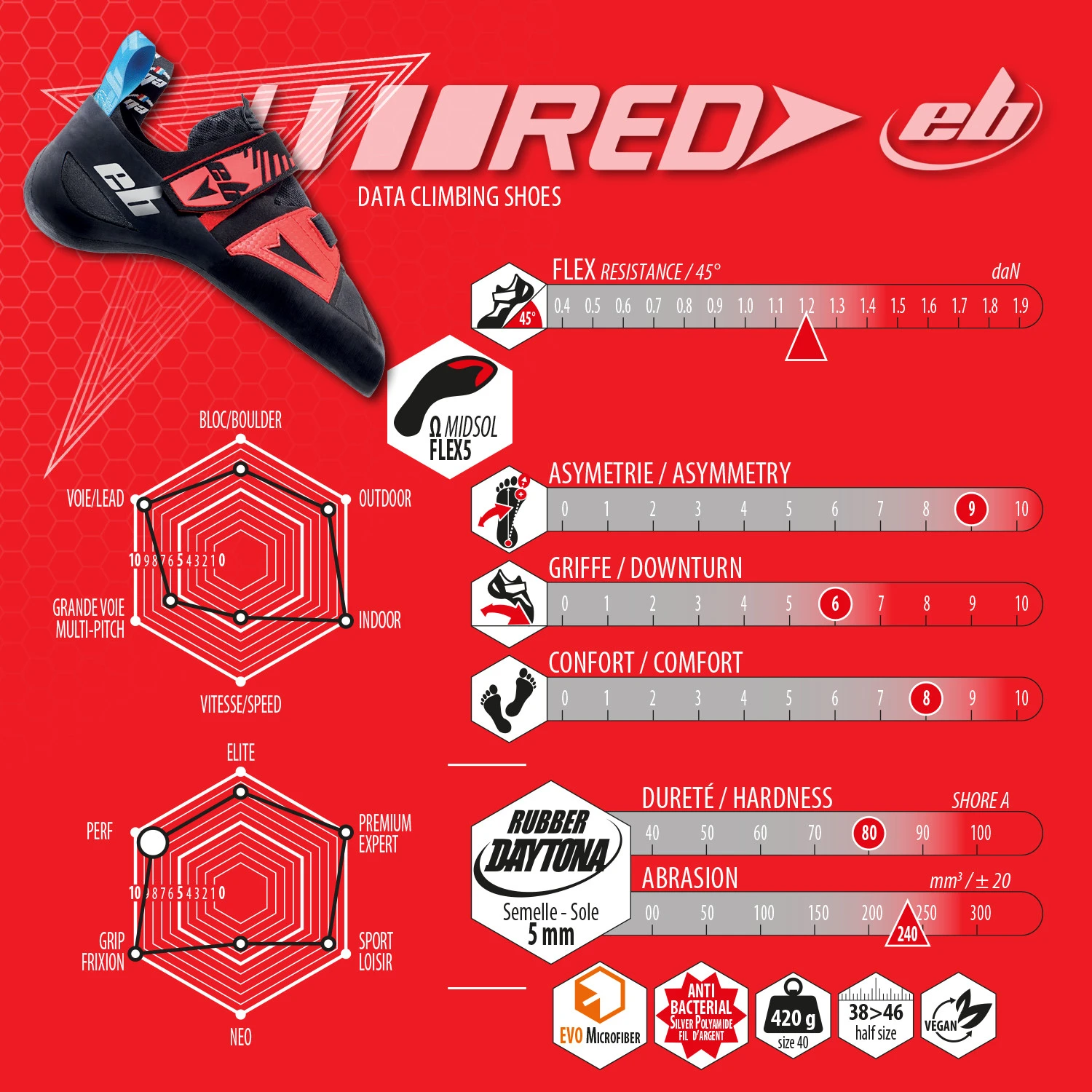 Particolarmente efficaci sui tiri piccoli, le scarpette da arrampicata EB Climbing Red sono pensate per gli scalatori che cercano la precisione, ma non vogliono trascurare il comfort.