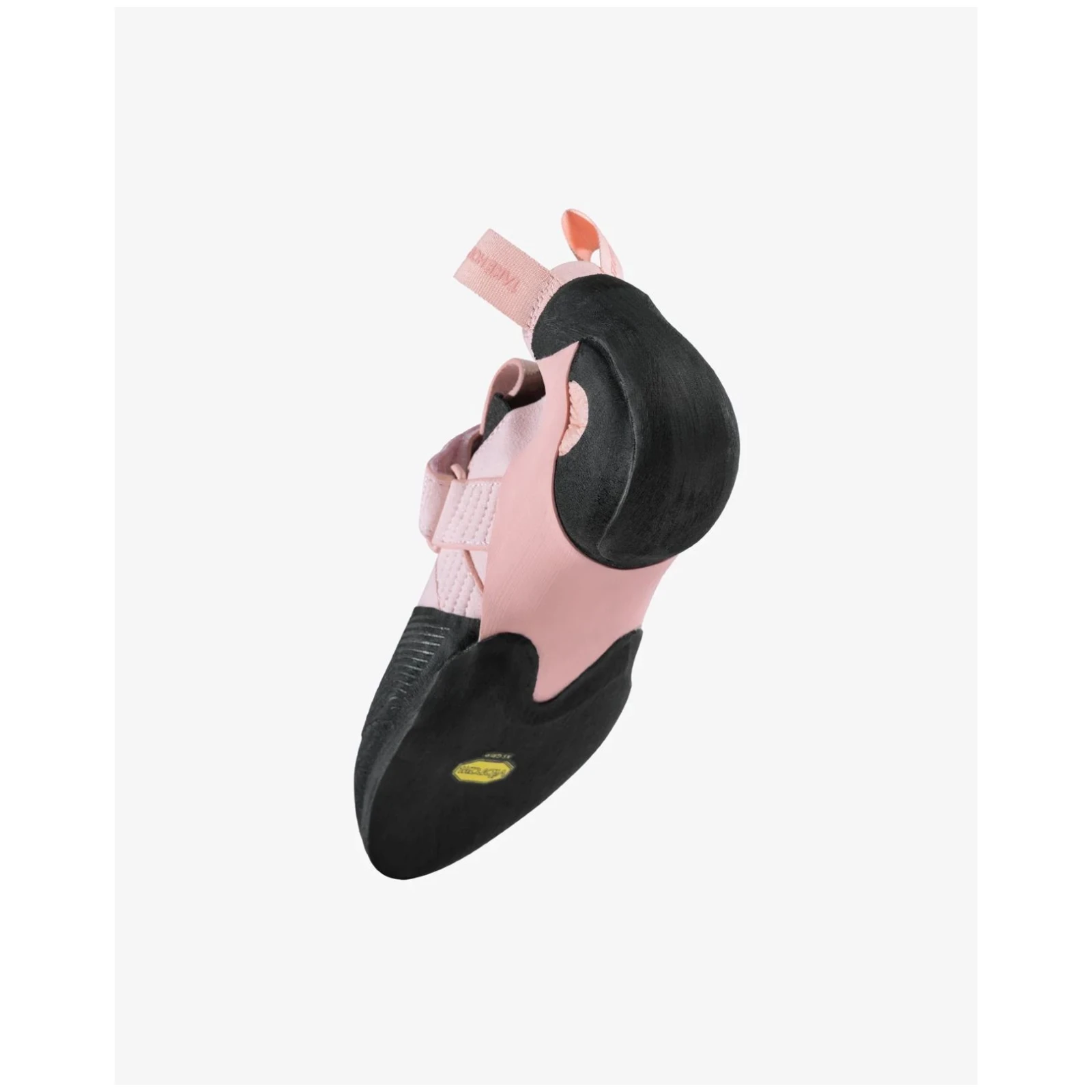 L'intersuola contiene una piastra stampata in fibra di legno brevettata e offre quindi sufficiente rigidità e supporto nella zona sotto le dita. La suola divisa consente al contempo la flessione nella parte centrale della scarpa e facilita i movimenti in cui è necessario il contatto con la roccia con la massima superficie del piede. La suola è dotata di una gomma Vibram XS GRIP ad alte prestazioni. La scarpetta da arrampicata include anche una generosa copertura in gomma sulla punta. Sul tallone, la gomma si estende fino alla parte superiore della scarpa, offrendo un perfetto equilibrio tra rigidità e sensibilità per i tallonaggi difficili.