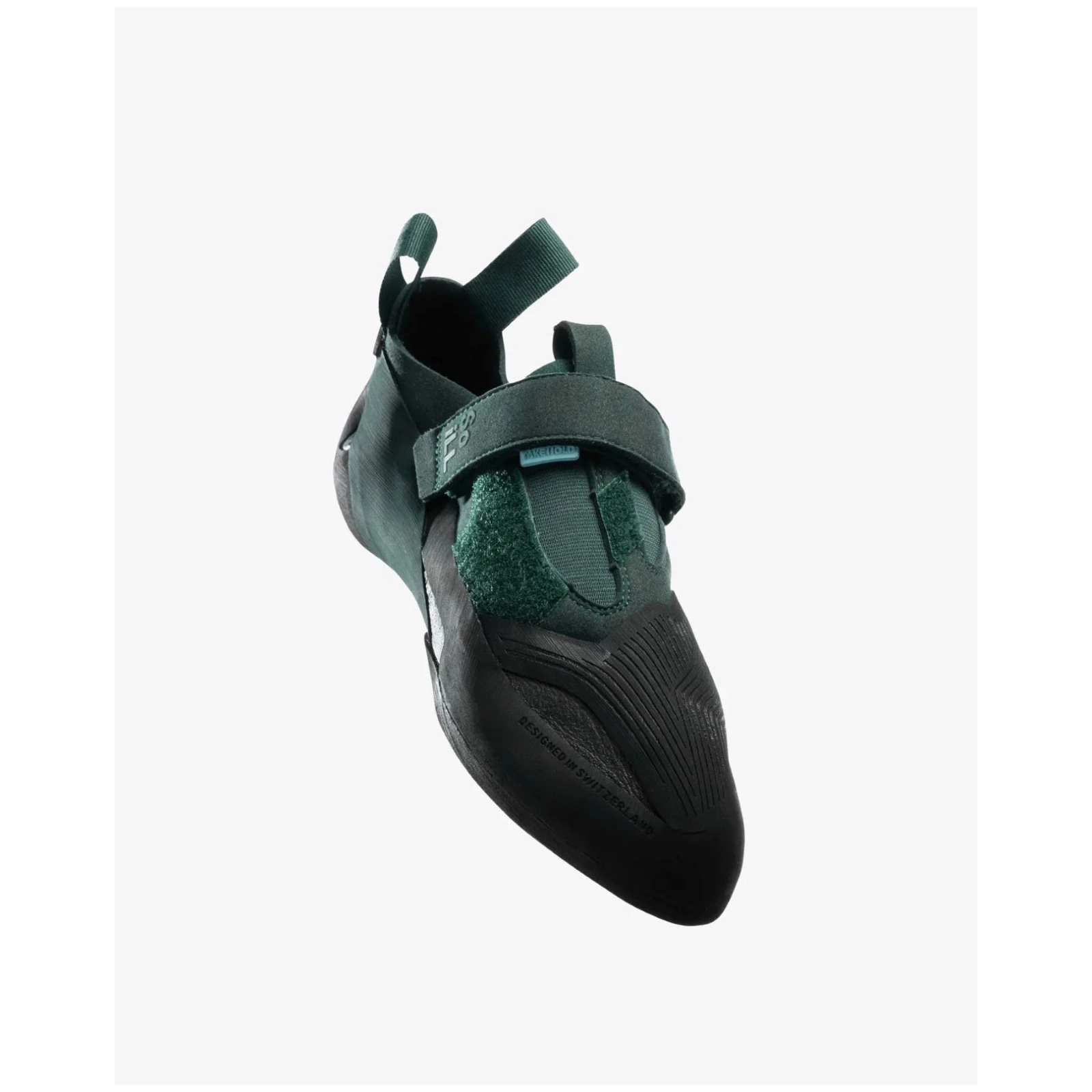 L'intersuola contiene una piastra stampata in fibra di legno brevettata e offre quindi sufficiente rigidità e supporto nella zona sotto le dita. La suola divisa consente al contempo la flessione nella parte centrale della scarpa e facilita i movimenti in cui è necessario il contatto con la roccia con la massima superficie del piede. La suola è dotata di una gomma Vibram XS GRIP ad alte prestazioni. La scarpetta da arrampicata include anche una generosa copertura in gomma sulla punta. Sul tallone, la gomma si estende fino alla parte superiore della scarpa, offrendo un perfetto equilibrio tra rigidità e sensibilità per i tallonaggi difficili.