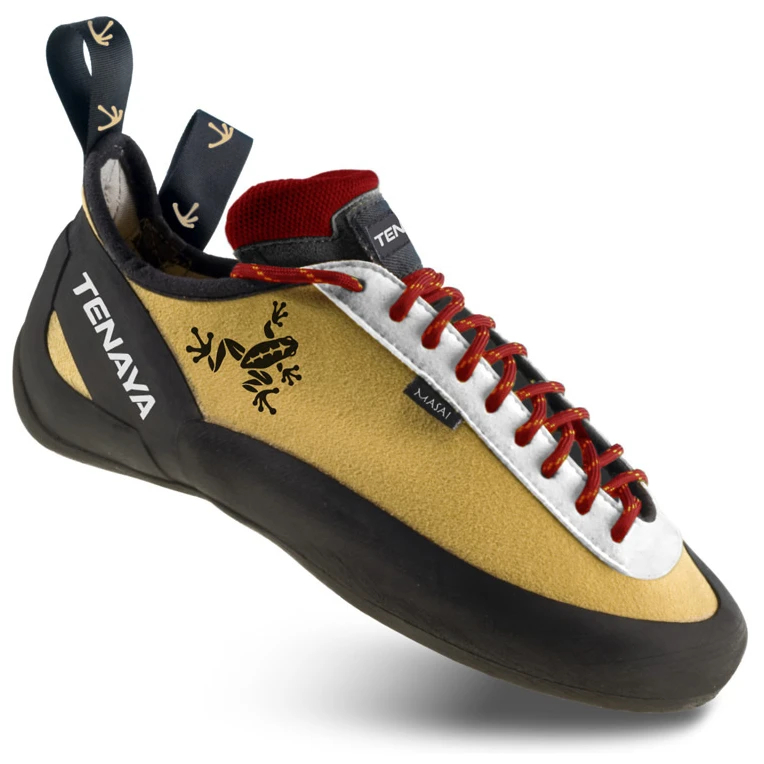 Tenaya Le Masai sono state progettate come scarpe da arrampicata performanti e versatili, in grado di raggiungere un perfetto equilibrio tra sensibilità e capacità di esercitare la pressione necessaria quando si sale su piccoli gradini. Il design e la tecnologia utilizzati sono semplici e funzionali. La colla di precisione sulla punta assicura una durata sufficiente. Grazie all'allacciatura, gli scalatori possono essere adattati a quasi tutti i piedi voluminosi. Calzano perfettamente e l'arrampicata è estremamente confortevole.