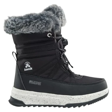 Gli scarponi da bambino Kamik Stormy F manterranno i tuoi bambini al caldo e con stile per tutta la stagione. Questi stivali sono realizzati con una tomaia in nylon impermeabile e una membrana DriDefense e assicurano che il marciapiede fangoso non ti rovini l'umore (né i tuoi piedi!). Il bordo antineve in pelliccia sintetica aggiunge una sensazione di comfort, mentre la suola in gomma aderente ti manterrà stabile su terreni scivolosi. Il sistema regolabile di allacciatura bungee offre una soluzione senza problemi per stringere gli stivali, anche con i guanti. Grazie all'isolamento in pile espanso che manterrà i tuoi piedi caldi e comodi fino a -32 °C, le tue avventure non saranno interrotte dal freddo. Dai sentieri innevati, al divertimento sulla neve alle passeggiate invernali in città, questi scarponi sono la combinazione perfetta di calore, stile e resistenza.