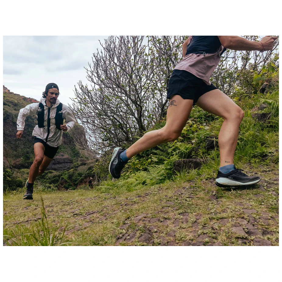 Quando ti muovi su superfici non consolidate, puoi fare pieno affidamento sulla suola Vibram® Megagrip. È dotata di tasselli da 4 mm che si aggrappano al terreno, garantendo un'aderenza di prima classe su superfici bagnate e asciutte. Queste scarpe da running ti offriranno anche il massimo livello di ammortizzazione, che ti proteggerà dalle pietre aguzze.