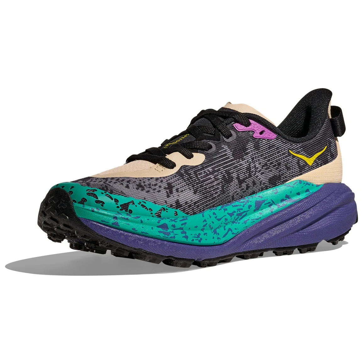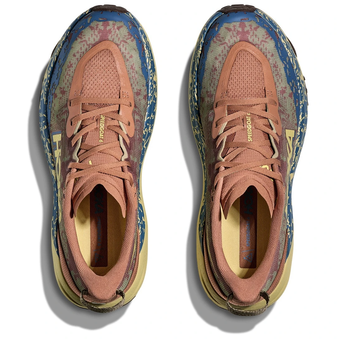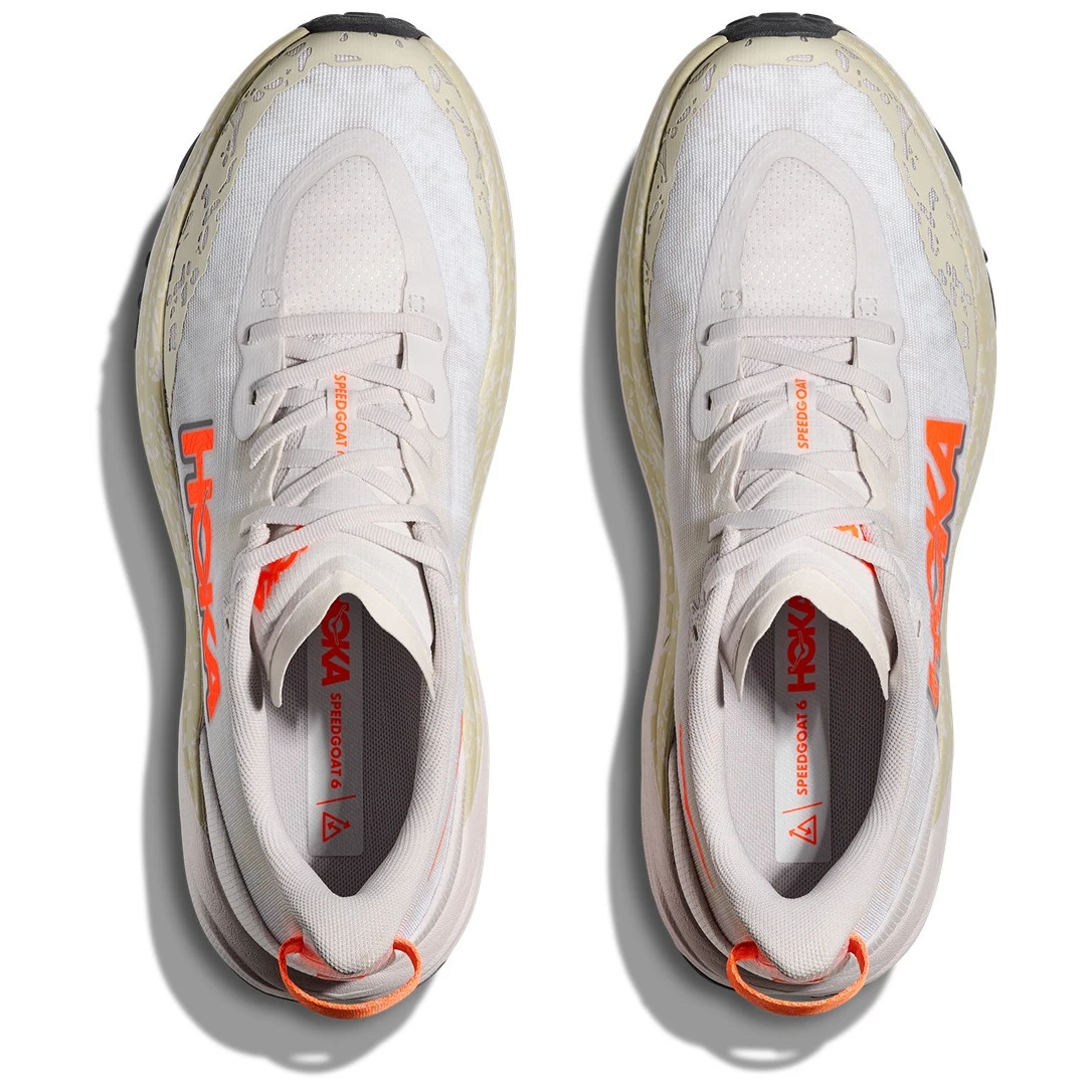 La scarpa da corsa Speedgoat 6 di Hoka è progettata per i percorsi tecnici. 6. la generazione ritorna con un peso ridotto e una grande trazione. Questa scarpa continua dalla suola ai lacci con un'intersuola Vibram® Megagrip e un capocorda di trazione per migliorare l'aderenza sui terreni sciolti. La Speedgoat 6 mantiene la stessa altezza della suola e la stessa forma rocker (curvatura della suola), utilizza una mescola più leggera per l'intersuola e una rete jacquard a due strati più spessa che ispira fiducia su qualsiasi terreno .