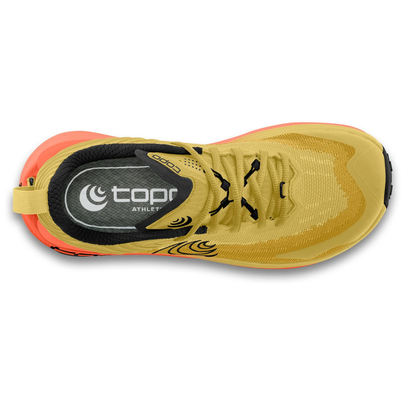 Le scarpe da trail running Topo Vista sono progettate per terreni tecnici, dove hai bisogno di massima ammortizzazione e trazione affidabile. L'intersuola ZipFoam™ con un'altezza di 38 mm sul tallone e 33 mm sull'avampiede offre un atterraggio morbido e allo stesso tempo un'eccellente reattività. La forma rocker assicura una transizione fluida dall'impatto alla spinta e risparmia energia sui lunghi percorsi.
