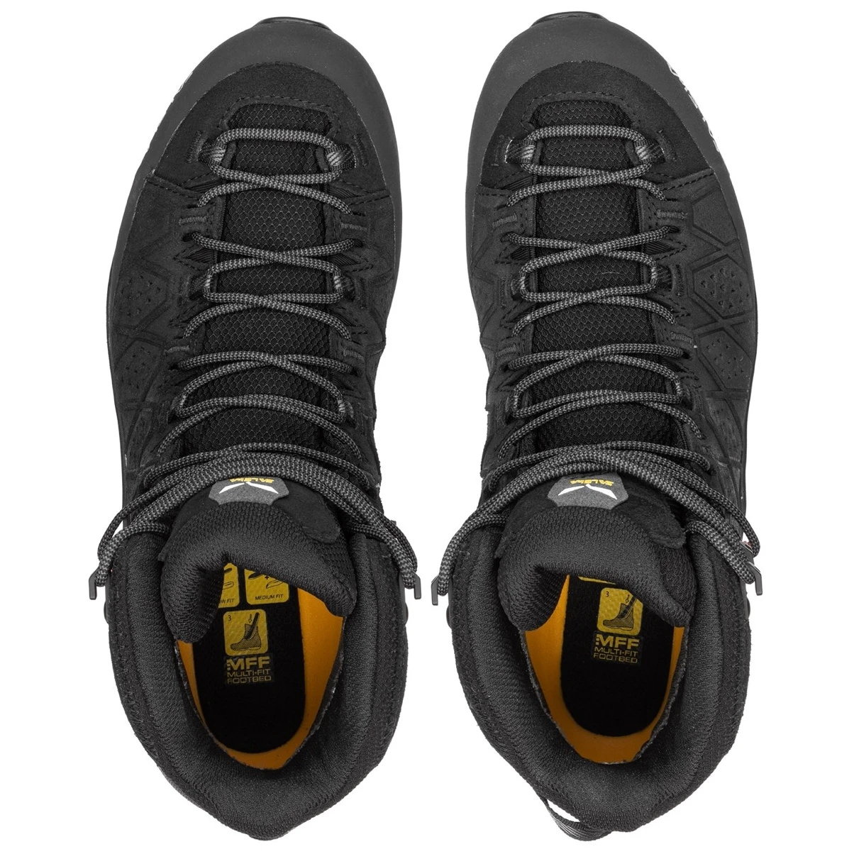 Il sistema di protezione brevettato 3F con cavo d'acciaio fornisce un solido sostegno alla caviglia e stabilità laterale, mentre il collare Flex aumenta la gamma di movimento posteriore della caviglia. La speciale soletta Salewa Multi Fit Footbed Plus (MFF+) è dotata di strati intercambiabili che ottimizzano il comfort della camminata. L'allacciatura da arrampicata consente di regolare il tallone per migliorare le prestazioni nei tratti tecnici più difficili.