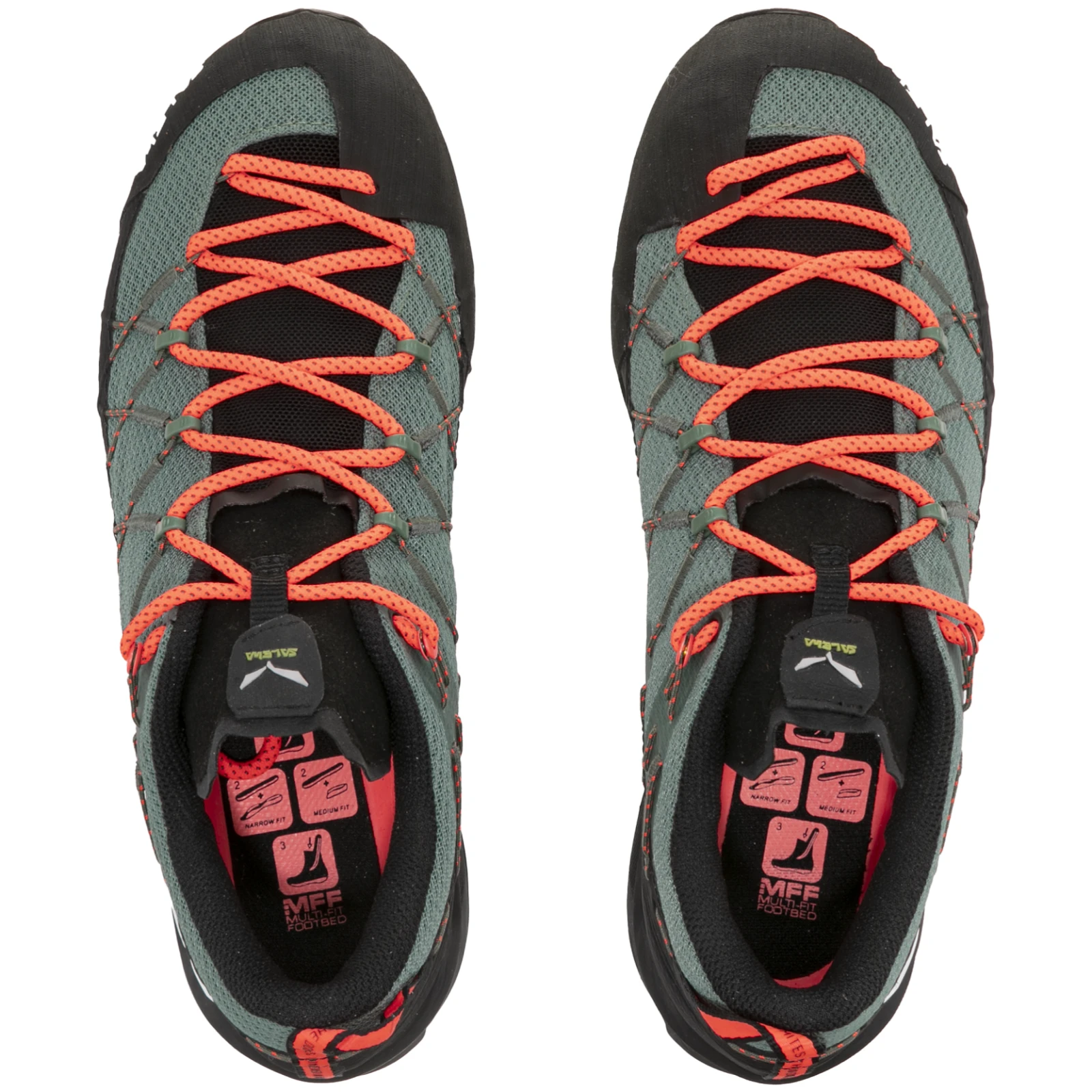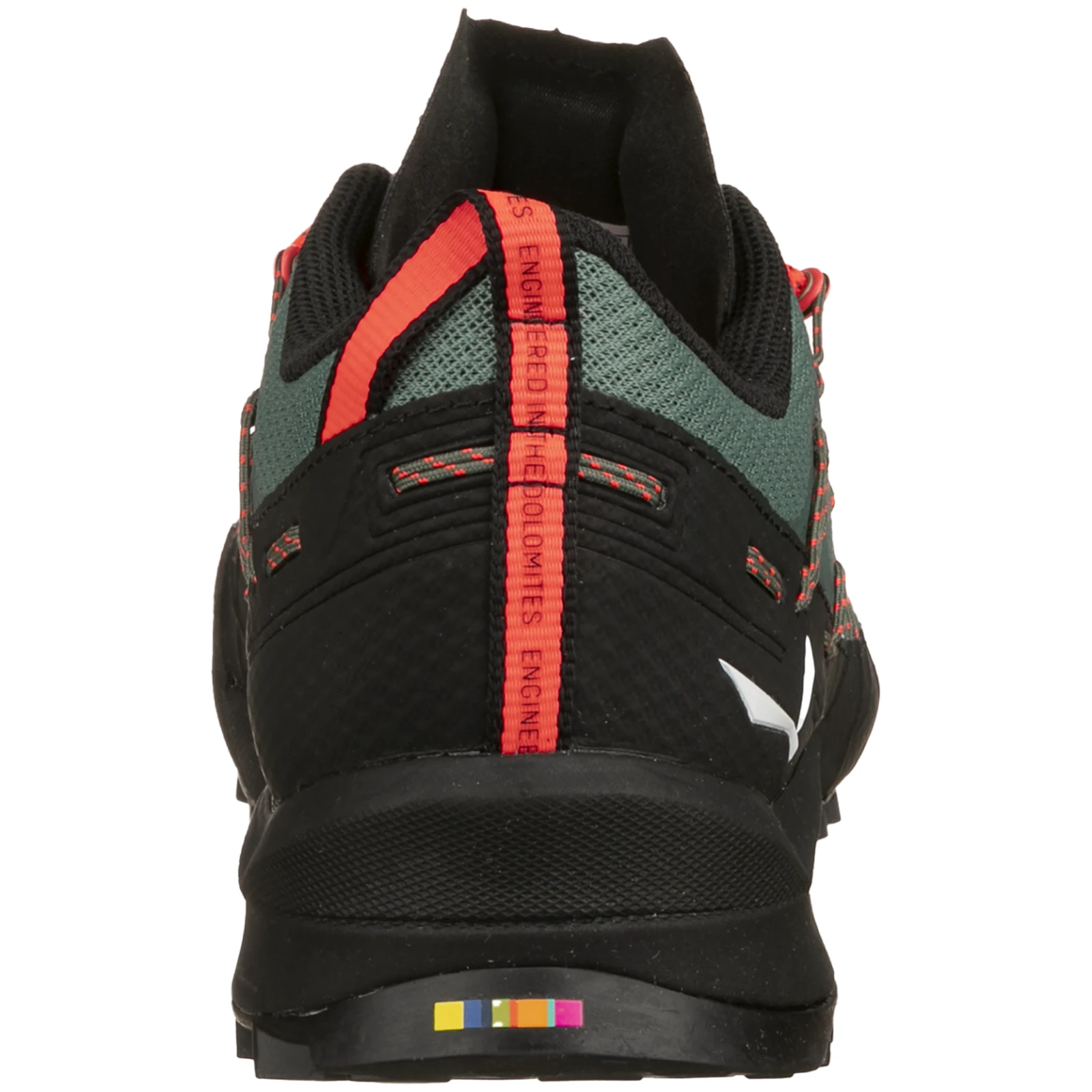 Scarpe basse da donna Salewa La Wildfire 2 W è ideale per l'arrampicata in ferrata, ma anche per le escursioni più leggere. Quando si affrontano le salite rocciose delle ferrate e i passaggi tecnici più difficili, si apprezza la versatile suola POMOCA Speed Mtn, che convince per l'elevata aderenza, la trazione e la precisione. Nella punta della suola si trova un'importante zona di arrampicata: una parte della suola senza disegno per arrampicarsi con maggiore sicurezza sugli affioramenti rocciosi. Lo strato superiore in mesh traspirante è protetto dai danni grazie alla speciale tecnologia EXA SHELL. Oltre a questa funzione protettiva, le griglie sulla scarpa aumentano il comfort e la calzata è migliore grazie al metodo di iniezione utilizzato.