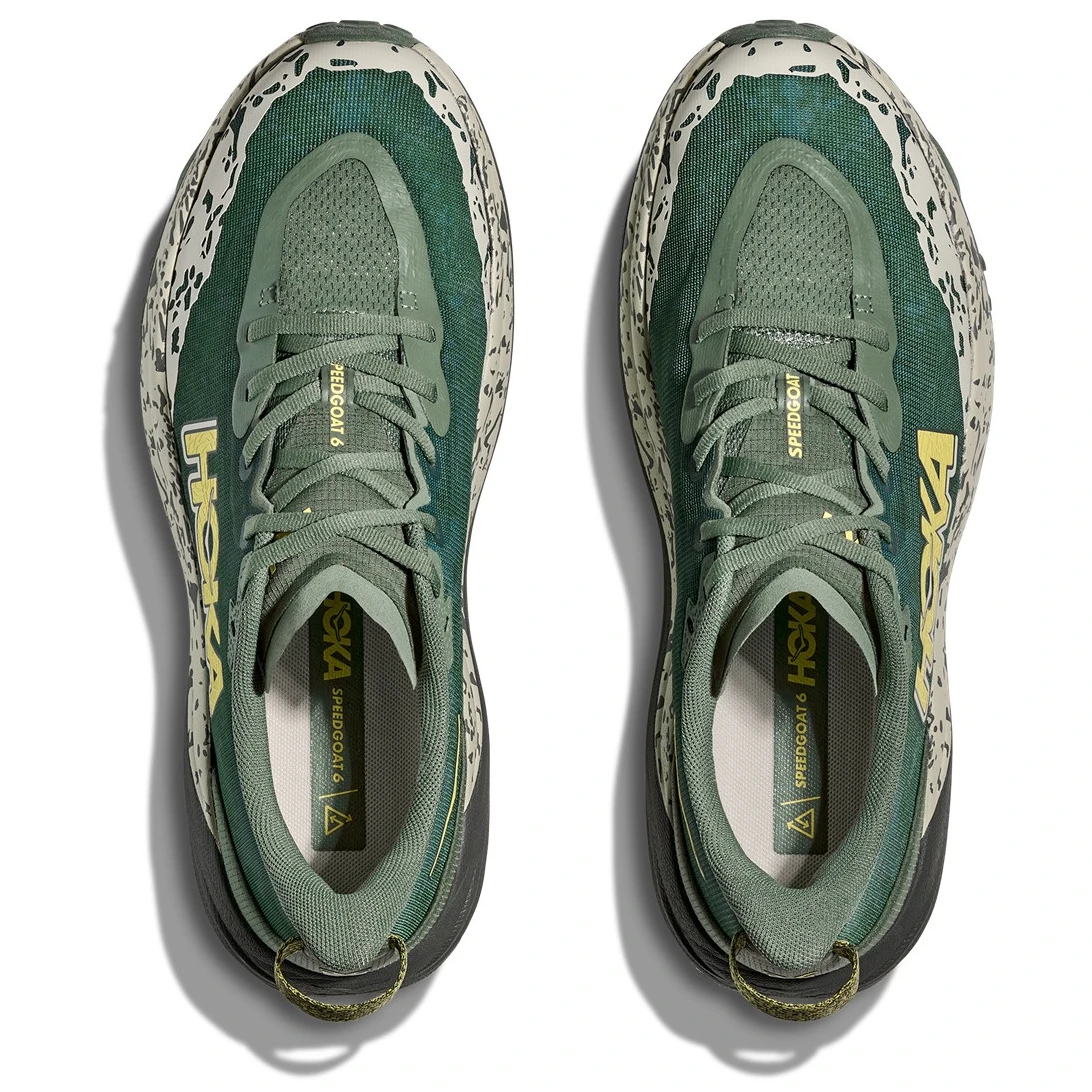 La scarpa da corsa Speedgoat 6 Wide di Hoka è progettata per i percorsi tecnici. 6. la generazione ritorna con un peso ridotto e una grande trazione. Questa scarpa continua dalla suola ai lacci con un'intersuola Vibram® Megagrip e un capocorda di trazione per migliorare l'aderenza sui terreni sciolti. La Speedgoat Wide 6 mantiene la stessa altezza della suola e la stessa forma rocker (curvatura della suola), utilizzando una mescola dell'intersuola più leggera e una rete jacquard a due strati più robusta che ispira fiducia su qualsiasi terreno .