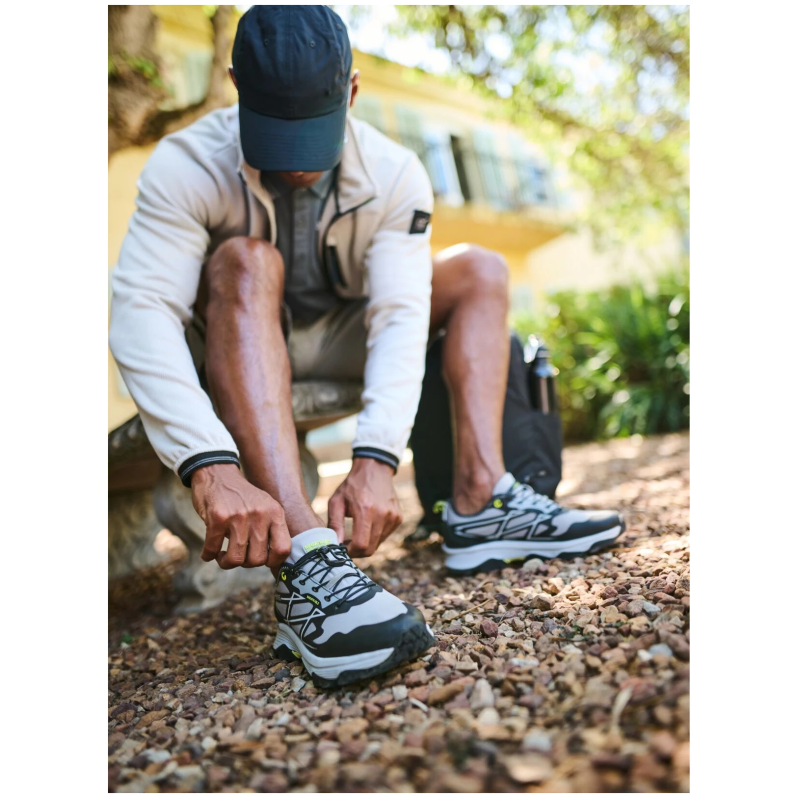Grazie alla resistente tomaia in nylon ripstop e alla tecnologia impermeabile Hydropel, le scarpe sono impermeabili e traspiranti. All'interno si trova una soletta Tecfoam che ammortizza l'impatto e garantisce comfort. L'intersuola XLT ammortizza l'impatto del tallone e riduce l'affaticamento durante le lunghe escursioni o la corsa su terreni accidentati. La leggera suola in gomma è resistente e antiscivolo, offrendo un'eccellente trazione e stabilità su qualsiasi superficie. Amerai il sistema di allacciatura rapida per la sua semplicità. Il dettaglio riflettente sul tallone aumenta la sicurezza.