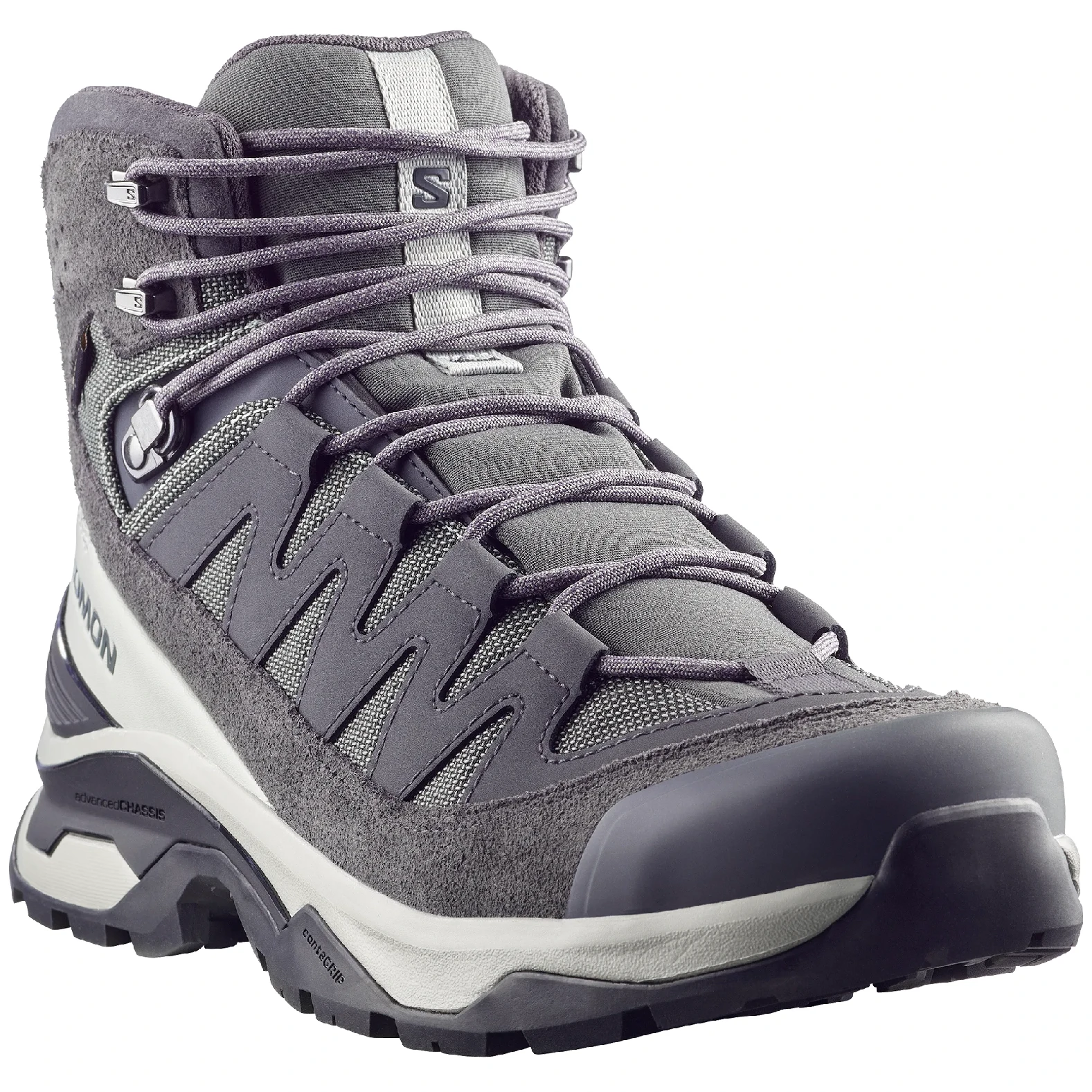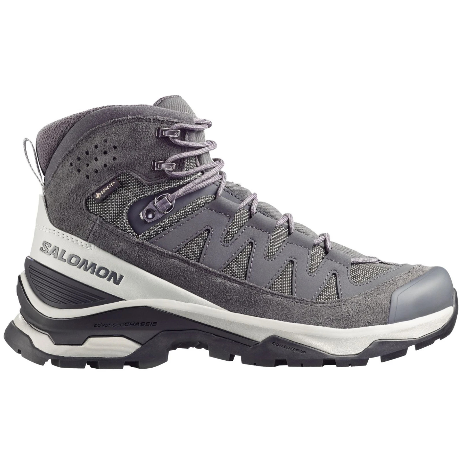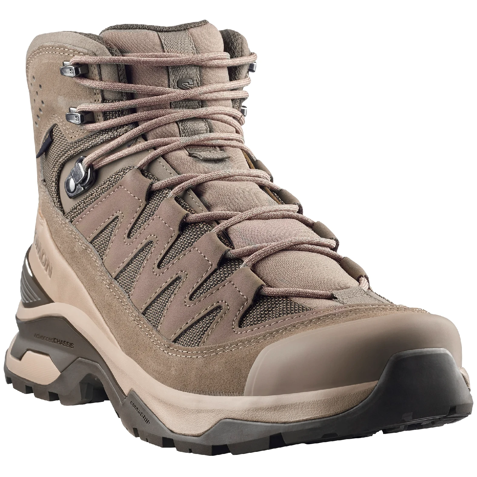La costruzione 4D advancedChassis™ offre massima stabilità e supporto senza limitare la fluidità del movimento, anche su terreni tecnicamente impegnativi. La suola All Terrain contaGRIP® in gomma resistente offre una trazione affidabile su superfici bagnate, asciutte e non compatte. La tomaia in pelle nabuk di alta qualità e sintetico è completata da una soletta sagomata OrthoLite®, tecnologia sensiFIT™ per un avvolgimento preciso del piede e una linguetta a soffietto che impedisce l'ingresso di sporco.