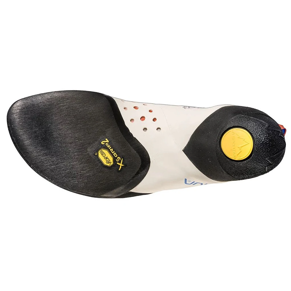 Scarpette da arrampicata La Sportiva Solution sono morbide, altamente sensibili nella punta. La forma anatomica del tallone mantiene perfettamente la scarpa in posizione durante il colpo di tacco. La robusta punta gommata consente di eseguire con precisione toe-ins, toe pull e altri trucchi a sbalzo. La scarpa non si muove dal piede grazie al sistema Lock Harness, due cinghie intersecanti all'interno della scarpa che tengono il piede saldamente in posizione. La chiusura della scarpa è assicurata da una cintura con una fibbia in velcro.