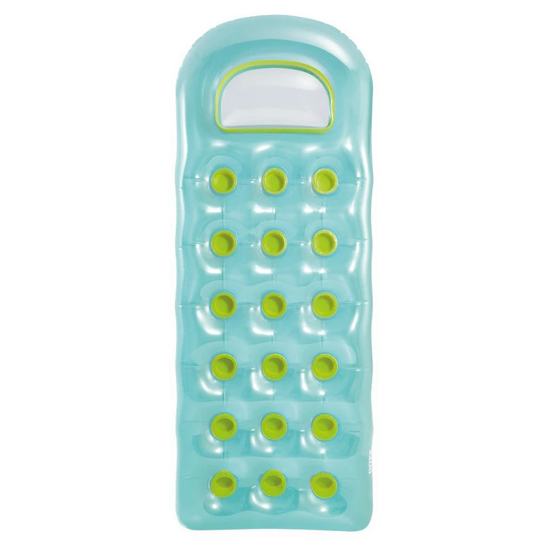 L'abbronzante Intex 18 tasche è molto comodo e disponibile in due splendidi colori. Nella parte superiore del lettino si trova una finestra trasparente che permette di osservare la vita sott'acqua. Il lettino ha due camere d'aria ed è realizzato in vinile di alta qualità.