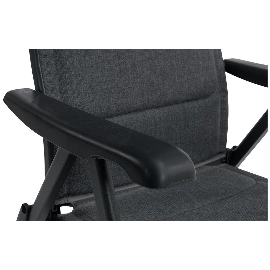 La spessa imbottitura in poliestere spazzolato garantisce un buon isolamento dal freddo, ha un'eccellente solidità del colore e resistenza ai raggi UV. È completata da un leggero telaio in alluminio di alta qualità. Questo garantisce la resistenza. Questa è una garanzia di durata. La serratura di sicurezza impedirà lo sganciamento accidentale. La sedia ha comodi braccioli e un'alta schienale ergonomico per un supporto ottimale del collo. Lo schienale può essere regolato in una delle sette posizioni.