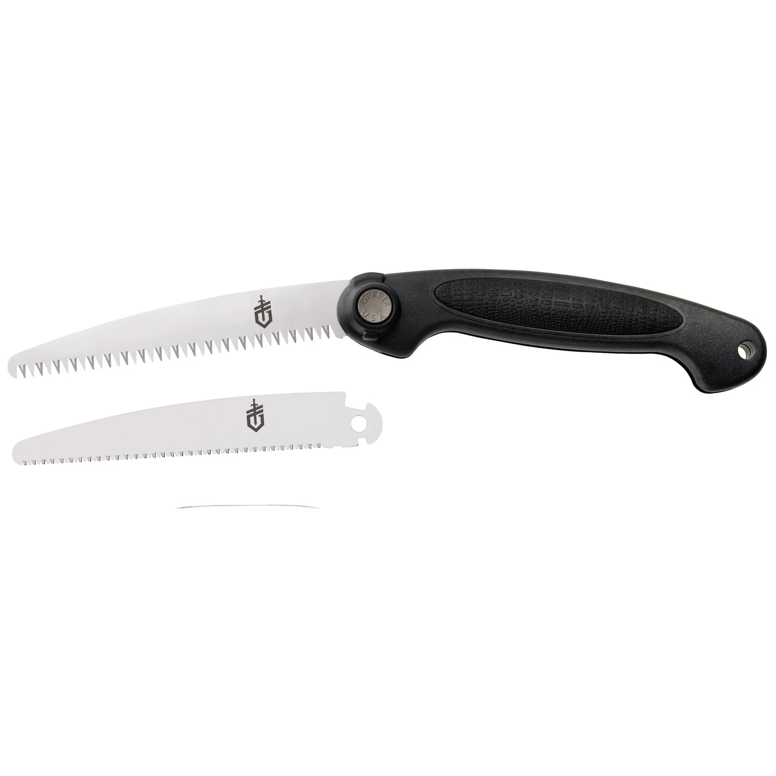 La sega pieghevole Gerber Exchange-A-Blade è dotata di lame intercambiabili, due tipi inclusi. Il primo, grazie ai suoi denti robusti, funziona quando si tagliano materiali morbidi e legno. Il secondo, grazie ai suoi denti più fini, sarà ideale per tagliare materiali più duri come l'osso. Questo strumento è perfetto per gli appassionati di bushcraft e di sopravvivenza, ma sarà anche utile in giardino o per i lavori di tutti i giorni.