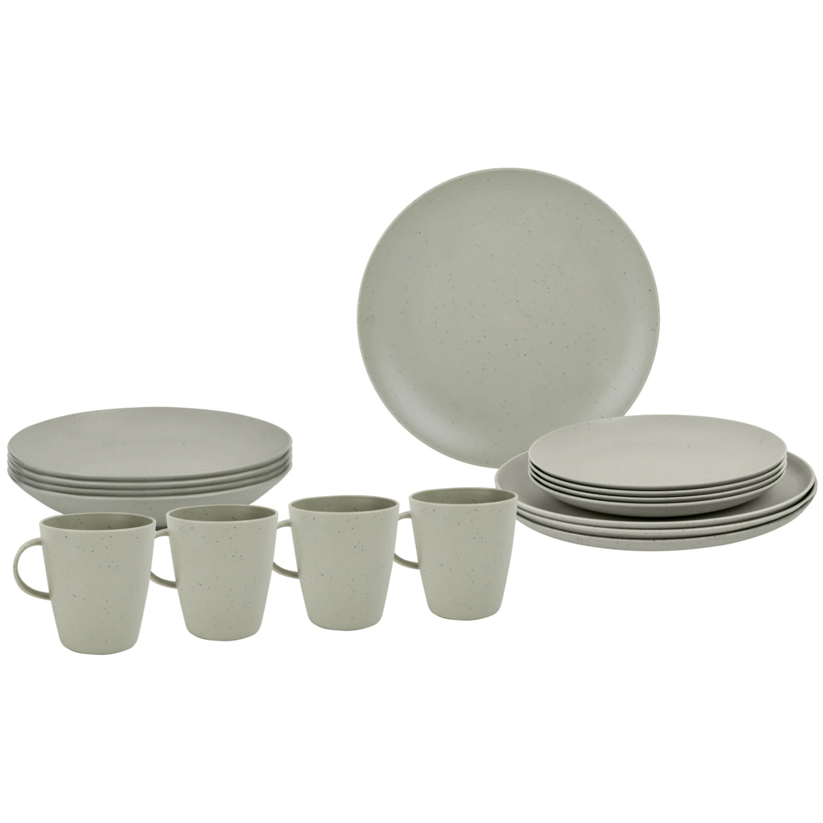 Brunner Lunch Box PLA Tierra Forest è un set completo di stoviglie in melamina di alta qualità con rivestimento antiscivoloche garantisce stabilità durante l'uso. L'elevata resistenza e la struttura leggera lo rendono ideale per il campeggio, il caravanning o le cene all'aperto. Il materiale è resistente a liquidi caldi fino a 90 °C e offre una lunga durata.
