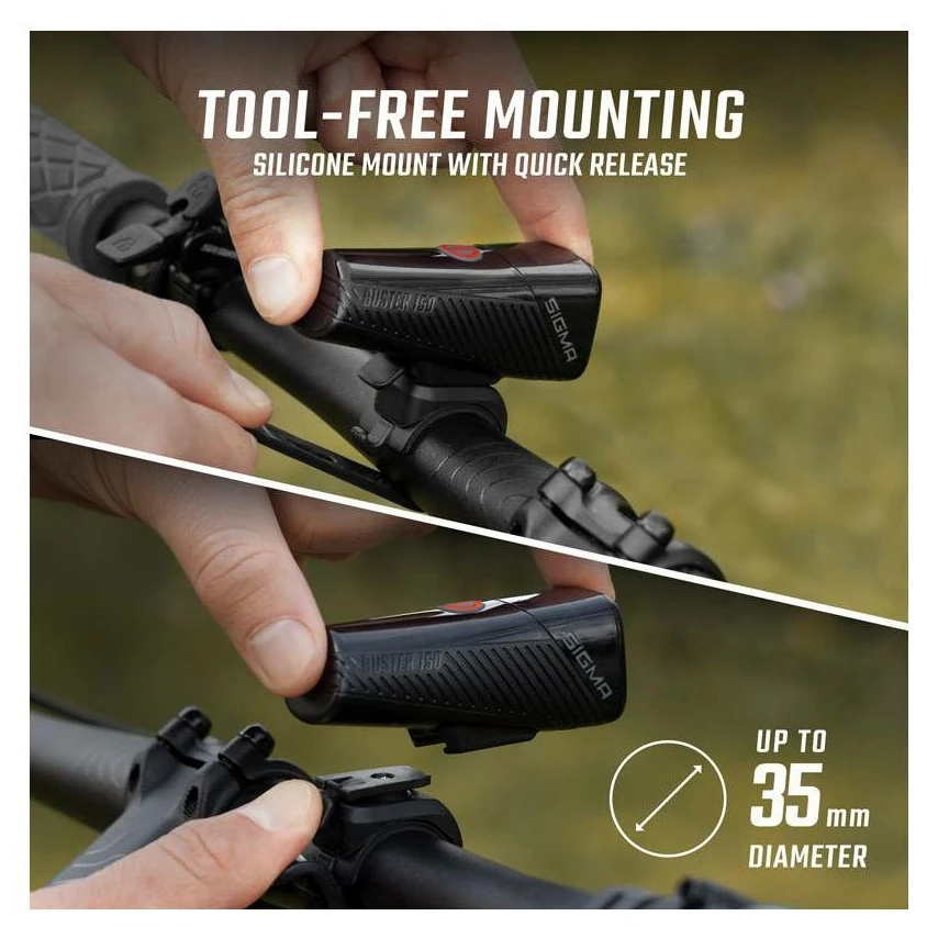 Sigma Buster 150 + Nyte 10 – un set di luci potente e leggero, con lunga durata, ricarica USB-C e facile montaggio per una guida sicura di giorno e di notte.