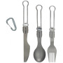 Il set di posate Titanium Tools di Rockland è la scelta perfetta per le escursioni, i viaggi e il campeggio. Apprezzerete l'estrema leggerezza e l'elevata durata per queste attività. Il set è composto da una forchetta, un coltello, un cucchiaio e un moschettone, grazie al quale è possibile fissare le posate, ad esempio, a uno zaino. L'ultima attrattiva è la maniglia pieghevole, che li rende quasi privi di ingombro. Oltre alle posate, la confezione contiene anche una pratica custodia in rete.