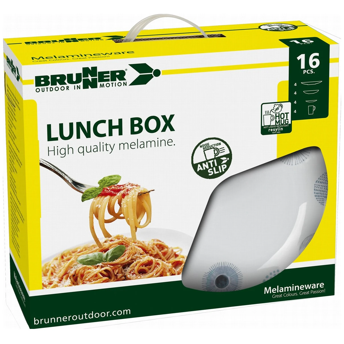 Il set di stoviglie Porta pranzo Mare profondo del marchio Brunner contiene l'attrezzatura base per il campeggio. Il set è composto da 16 pezzi ed è adatto a 4 persone. In campeggio apprezzerete la maggiore durata grazie alla melamina. Questo materiale è resistente agli urti, facile da pulire, resistente al calore e all'umidità, inodore e insapore e rispettoso dell'ambiente. I piatti possono essere messi in freezer e in lavastoviglie.