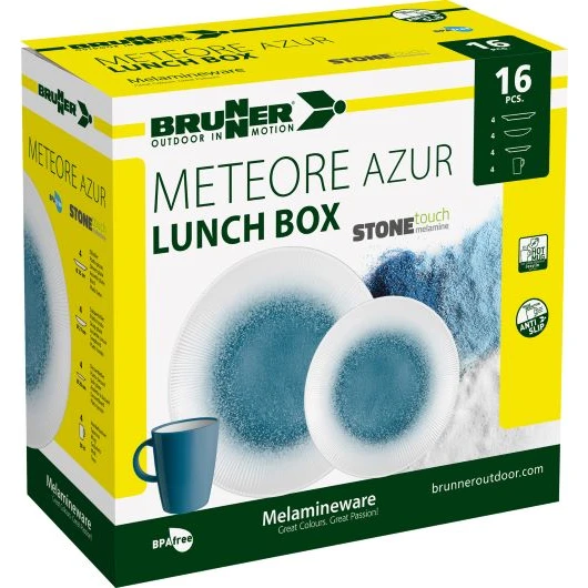 Il set perfetto di Brunner Lunch box Dolomite pensato per i pranzi in famiglia o con gli amici. Il set contiene 16 pezzi di altissima qualità. I piatti presentano un simpatico elemento insolito di disegno della sabbia.