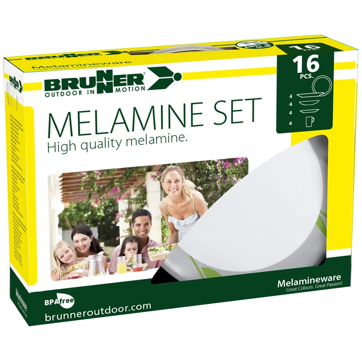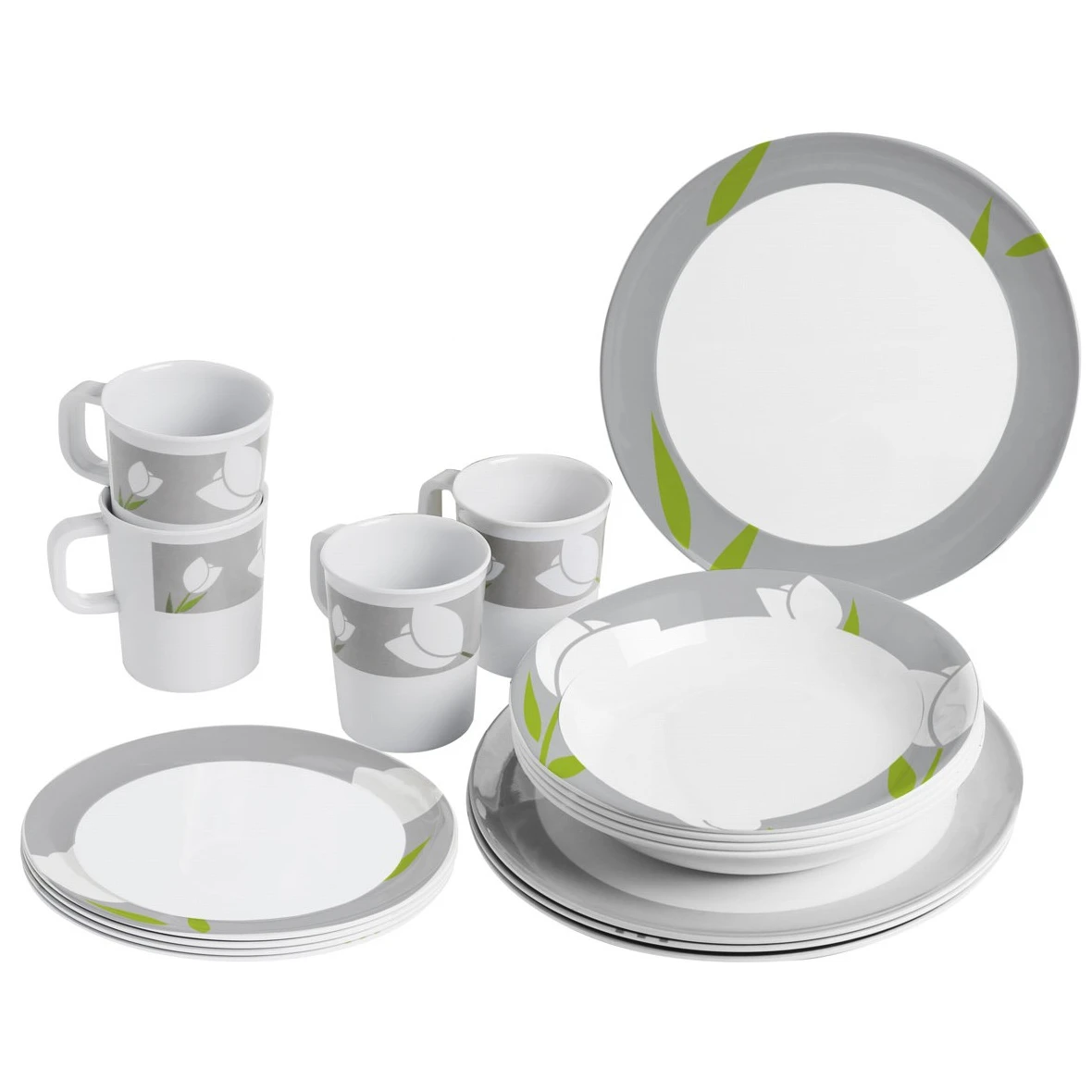 Il set di stoviglie Melamine Set Tulip del marchio Brunner contiene l'attrezzatura base per il campeggio. Il set è composto da 16 pezzi ed è adatto a 4 persone. In campeggio apprezzerete la maggiore durata grazie alla melamina. Questo materiale è resistente agli urti, facile da pulire, resistente al calore e all'umidità, inodore e insapore e rispettoso dell'ambiente. I piatti possono essere messi in freezer e in lavastoviglie.