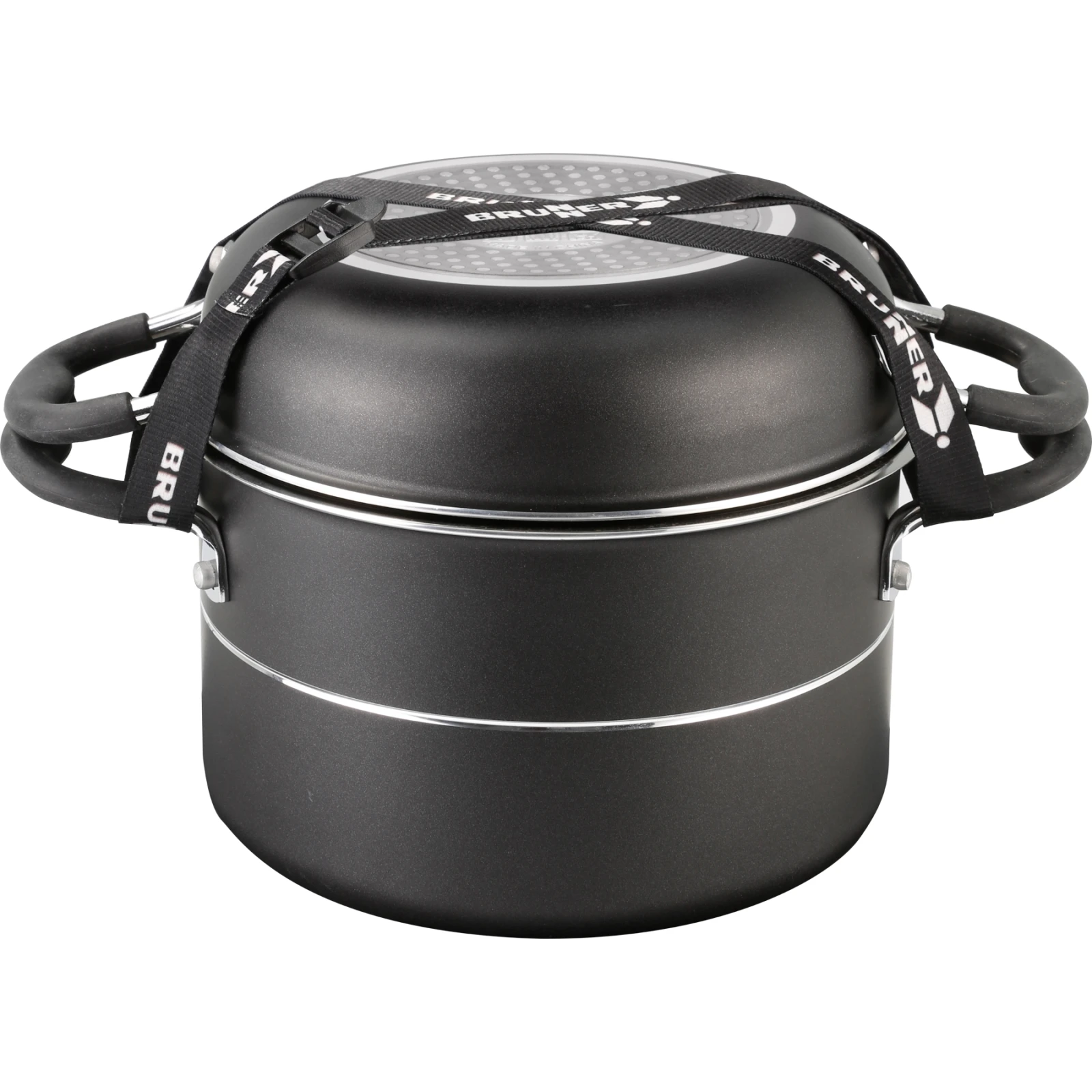 Set 7+1 Pirate NG - 20 cm del marchio Brunner è la scelta perfetta per i viaggi e il campeggio, dove si risparmia spazio prezioso. Questo set pirata comprende due pentole, due padelle, due coperchi e un manico rimovibile che lo rende facile da maneggiare e aiuta a risparmiare spazio. Il trasporto e la conservazione sono garantiti da una cinghia che tiene insieme l'intero set.