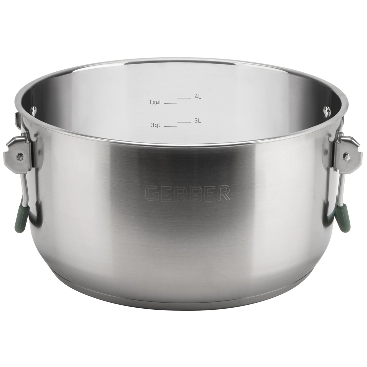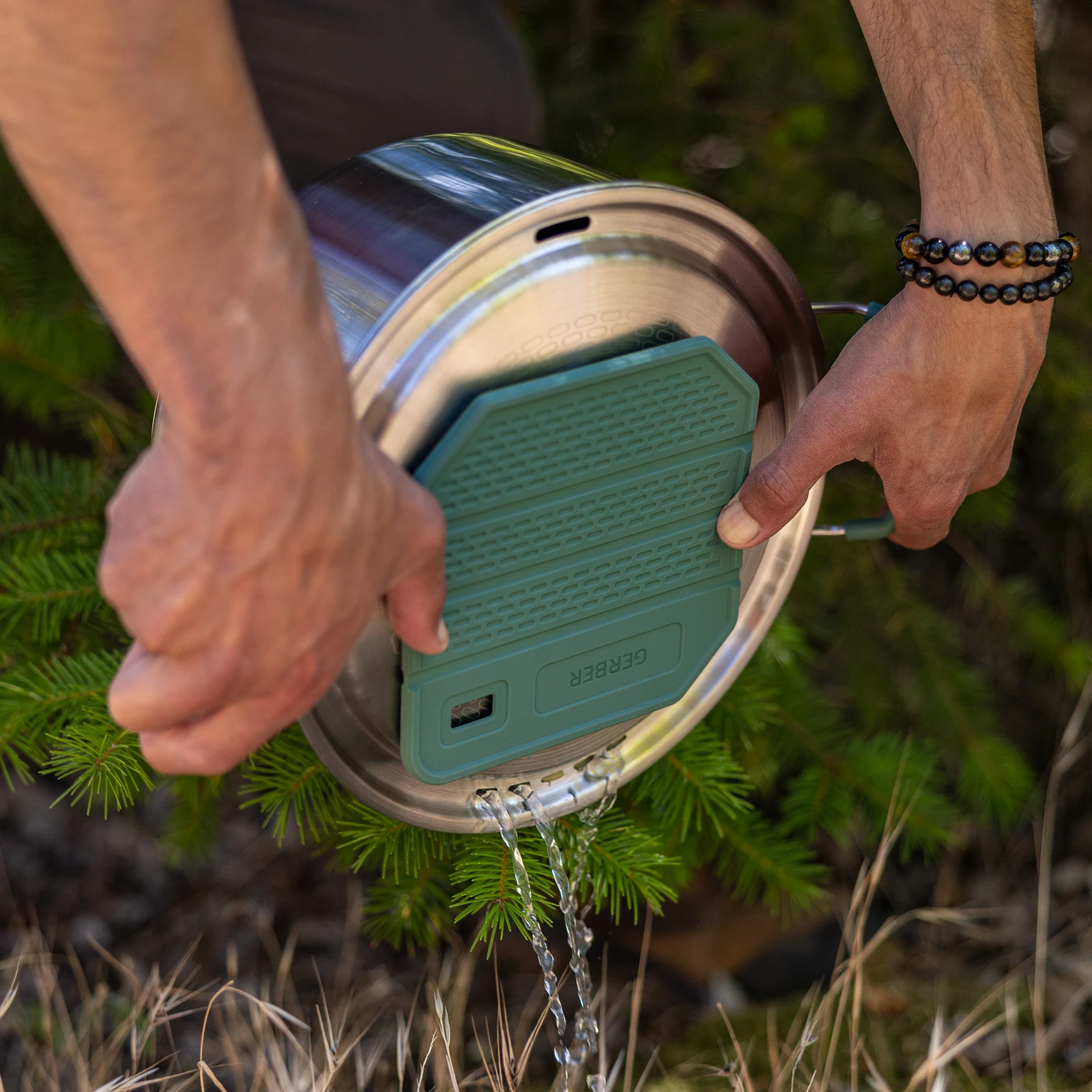 il set da cucina ComplEAT da 16 pezzi contiene tutto il necessario per sfamare facilmente un gruppo di campeggiatori affamati. Questo set da campeggio comprende una pentola e una padella con ampie superfici di cottura e un fondo a 3 strati per una distribuzione uniforme del calore. Le stoviglie aiutano a preparare i cibi e offrono spazio sufficiente per porzioni abbondanti una volta che il pasto è pronto. Quando i camper sono pieni, tutto si ripone in una borsa per riporli in modo sicuro e compatto.