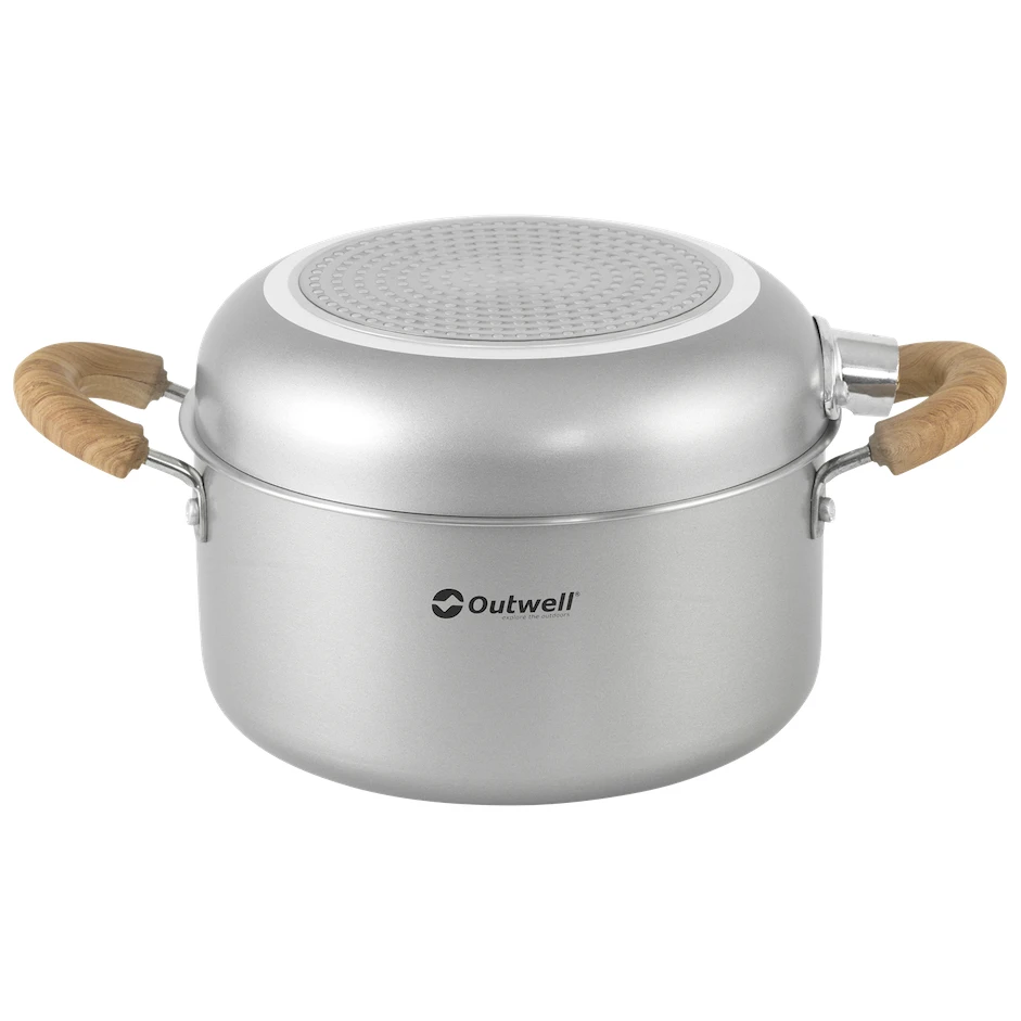 Il set di pentole da campeggio Outwell Feast Ceramic Set M si adatta perfettamente allo zaino e al camper. Si ripiega in un pacchetto compatto e gestisce il passaggio fluido dal fuoco vivo all'induzione.