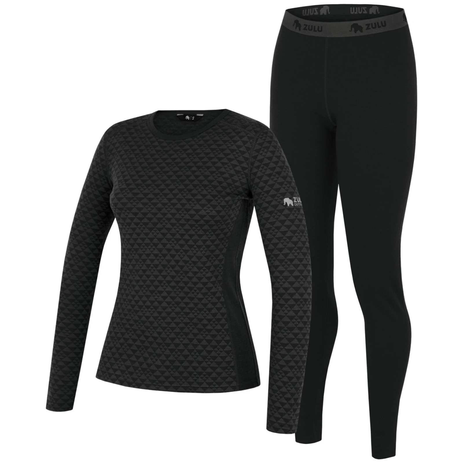 Il set funzionale da donna Zulu Merino 240 ha, grazie alla lana merino, eccellenti proprietà termoregolatrici ed elimina gli odori sgradevoli che si formano durante l'attività fisica. Apprezzerete la perfetta lavorazione della maglia jacquard e lecuciture piatte, che impediscono le abrasioni sulla pelle. I pantaloni hanno un'ampia e comoda fascia elastica in vita che non preme in nessun punto. Grazie al peso maggiore della lana merino (240 g), il set è adatto a tutte le attività invernali.