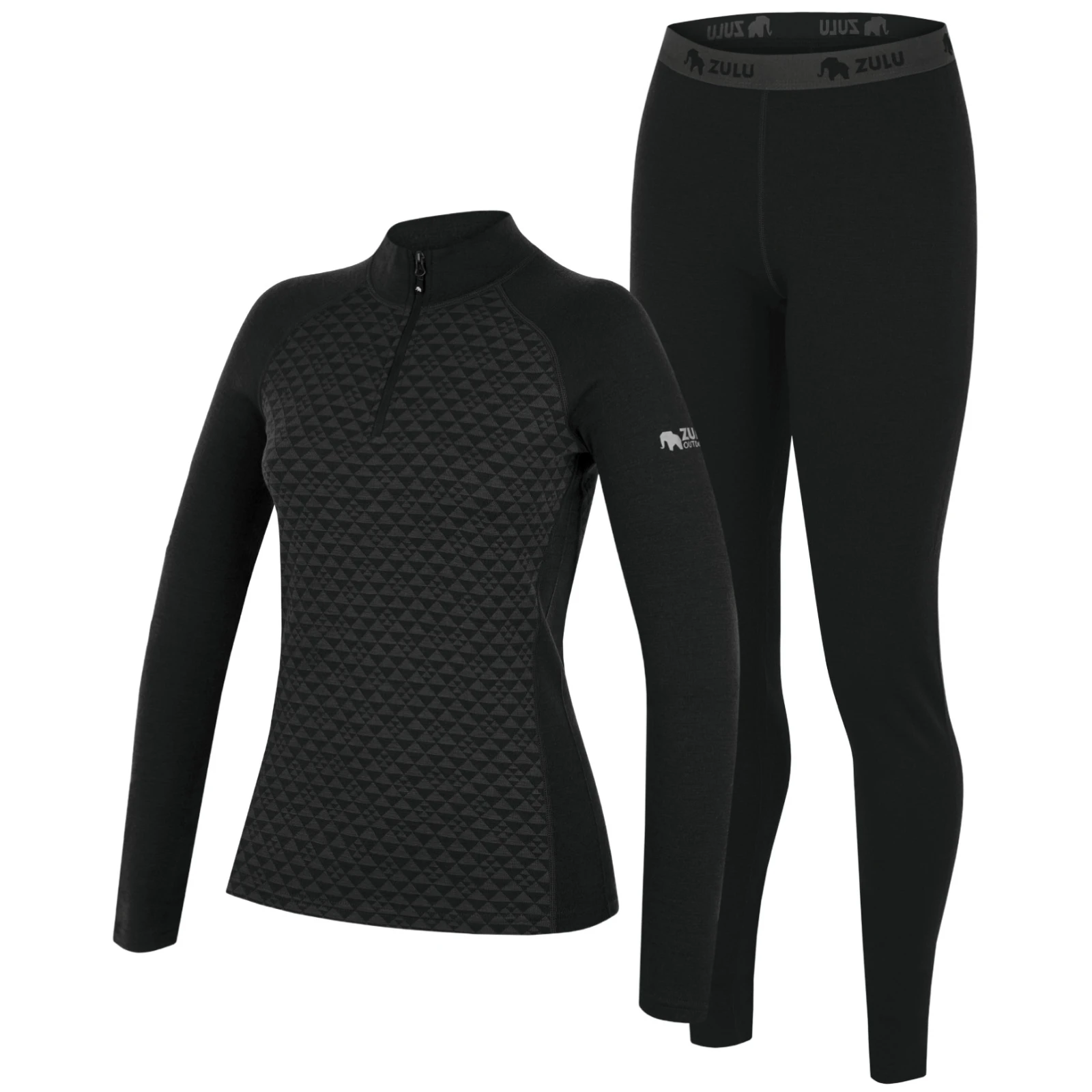 Grazie alla lana merino, il set funzionale Zulu Merino 240 da donna ha eccellenti proprietà termoregolatrici ed elimina i cattivi odori che si formano durante il movimento. Apprezzerete la perfetta lavorazione della maglia jacquard e lecuciture piatte, che impediscono le abrasioni sulla pelle. I pantaloni hanno un'ampia e comoda fascia elastica in vita che non preme in nessun punto. Grazie al peso maggiore della lana merino (240 g), il set è adatto a tutte le attività invernali.
