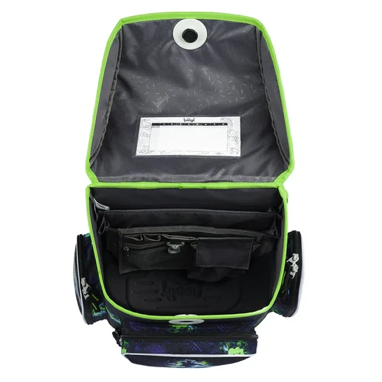 Lo zaino è realizzato in materiale robusto e impermeabile. La struttura rinforzata e il fondo solido mantengono una forma stabile in ogni situazione. Esternamente è presente una tasca frontale termica con zip e due tasche laterali con zip, ideali per una borraccia. Lo scomparto principale è accessibile tramite un coperchio con chiusura magnetica Fidlock, facile da usare. Si apre ruotando la rotellina e si chiude automaticamente. All'interno dello scomparto è presente un organizer che aiuta a distribuire meglio il peso dei libri di testo e una tasca trasparente per l'orario scolastico. Gli elementi riflettenti posizionati su tutti i lati aumentano la visibilità del bambino in condizioni di scarsa illuminazione.