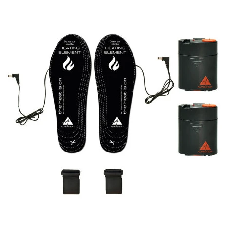 Le solette riscaldate Trend di Alpenheat offrono calore per più di 16 ore. Sono alimentate da un accumulatore ricaricabile o da batterie AA.