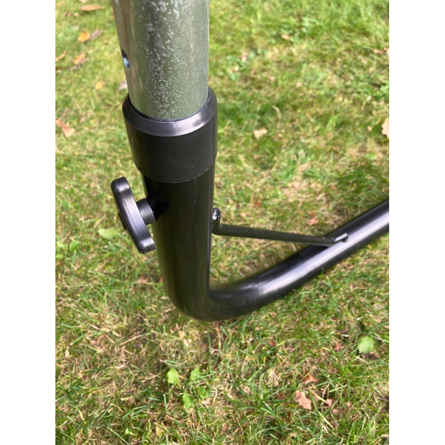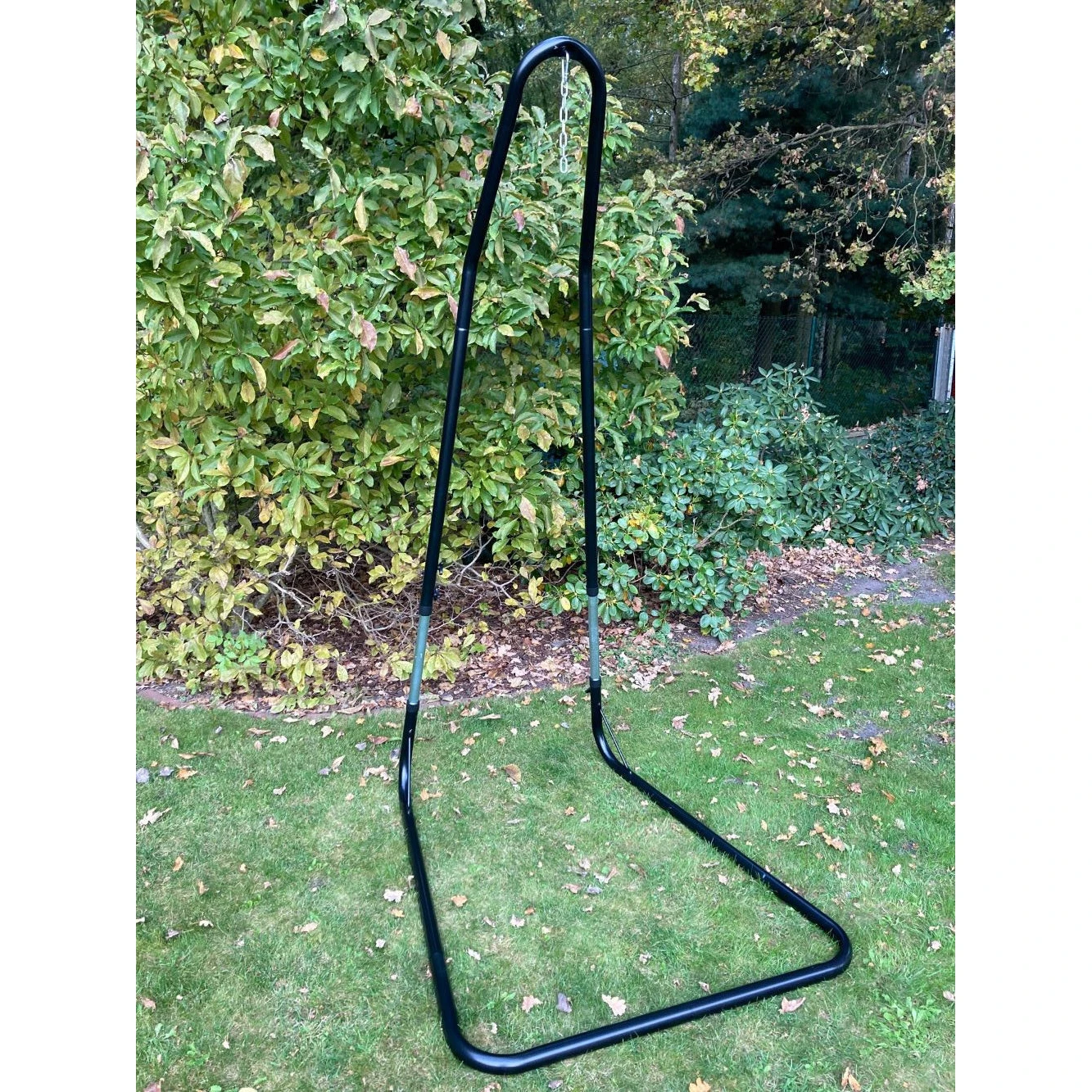 Supporto per sedie sospese autoportante e regolabile in altezza Hamaka.eu è realizzato in tubi d'acciaio verniciati a polvere. Grazie all'altezza regolabile, il punto di ancoraggio può essere spostato individualmente da 190 a 230 cm, a seconda del tipo di sedia a sospensione. Piedi in plastica solida per una maggiore stabilità e protezione del supporto. Dimensioni del supporto 130 x 115 x 200-240 cm, portata 125 kg.