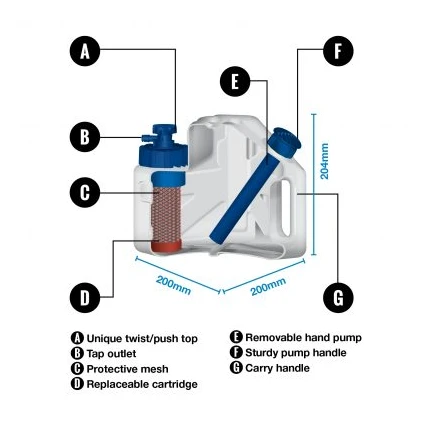 Il filtro Lifesaver Cube è un contenitore robusto e portatile che può filtrare fino a 5.000 litri di acqua pulita. La tanica ha una capacità di 5 litri ed è progettata per essere sufficiente per una famiglia in viaggio che non dispone di una rete idrica principale. Ma è anche adatto alle risposte di emergenza delle organizzazioni umanitarie e dei governi.