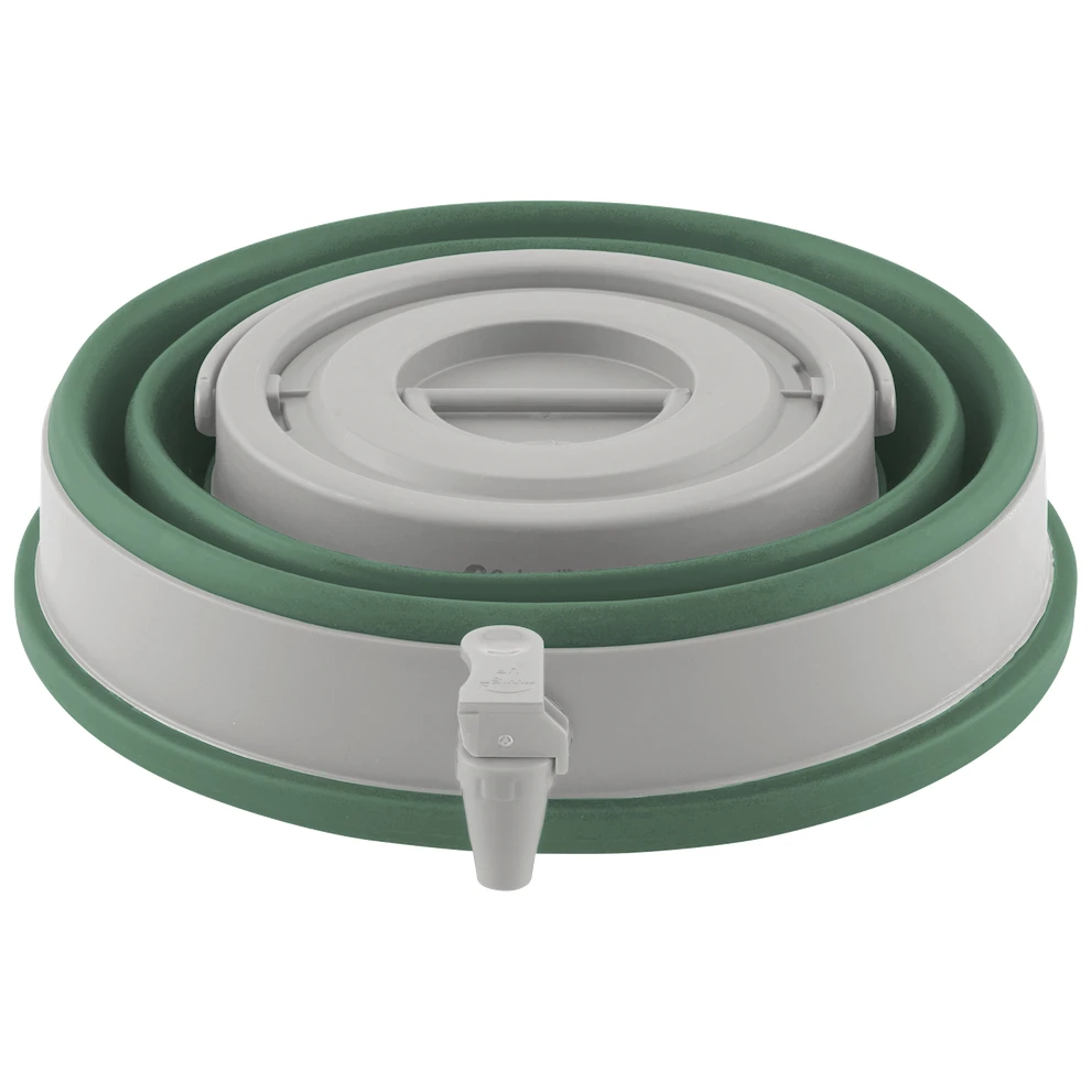 Il porta-acqua Collapse del marchio danese Outwell è l'aiuto ideale per far bere voi e i vostri bambini. Con una capacità di 12 litri, è facilmente sufficiente per l'intera giornata e può essere utilizzato per preparare, ad esempio, succhi di frutta per le feste dei bambini. Quando non serve, basta ripiegarlo in 37 x 32 x 8,5 cm e riporlo per non occupare spazio. Il fusto è dotato di una maniglia per facilitare il trasporto, di un coperchio che protegge il contenuto ma consente anche di riempirlo e lavarlo facilmente, e di un beccuccio che facilita la rotazione della bevanda.