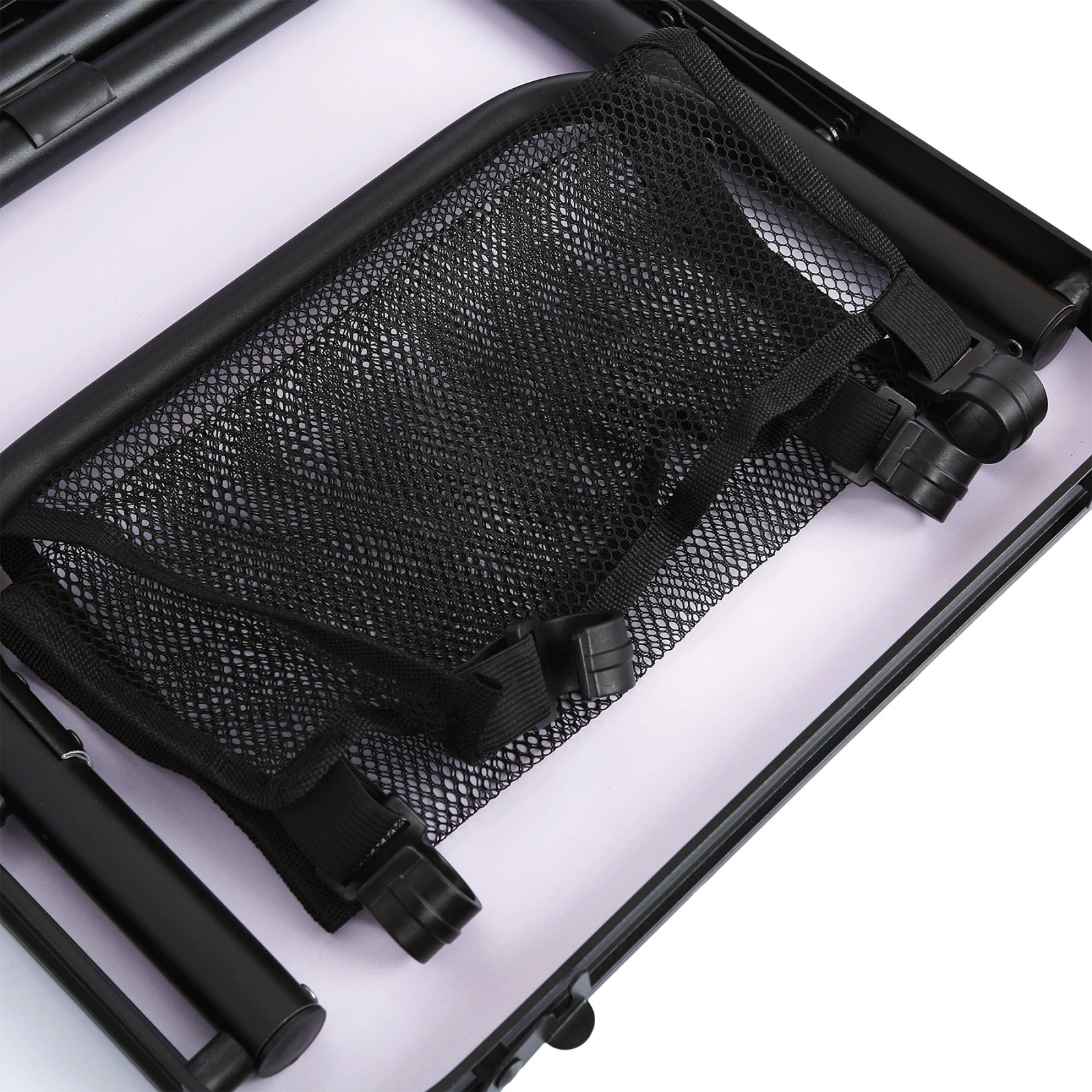 Grazie alla pratica rete di contenimento staccabile sotto il piano del tavolo, potrete avere sempre a portata di mano l'essenziale, anche in campeggio. Grazie all'alluminio utilizzato, il tavolo pesa solo 2,75 kg. La capacità di carico è fino a 30 kg, che è sicuramente sufficiente per tutto ciò che serve nella maggior parte degli eventi.