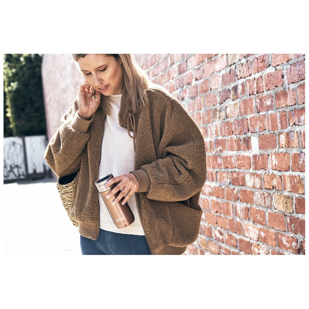 La borraccia termica Luxe da 360 ml del marchio Contigo garantisce che nulla si rovesci in viaggio grazie alla tecnologia AUTOSEAL. Il funzionamento con una sola mano offre il massimo comfort non solo in viaggio, ma anche durante le attività sportive. Basta premere il pulsante per bere e rilasciarlo per chiudere automaticamente il coperchio.
