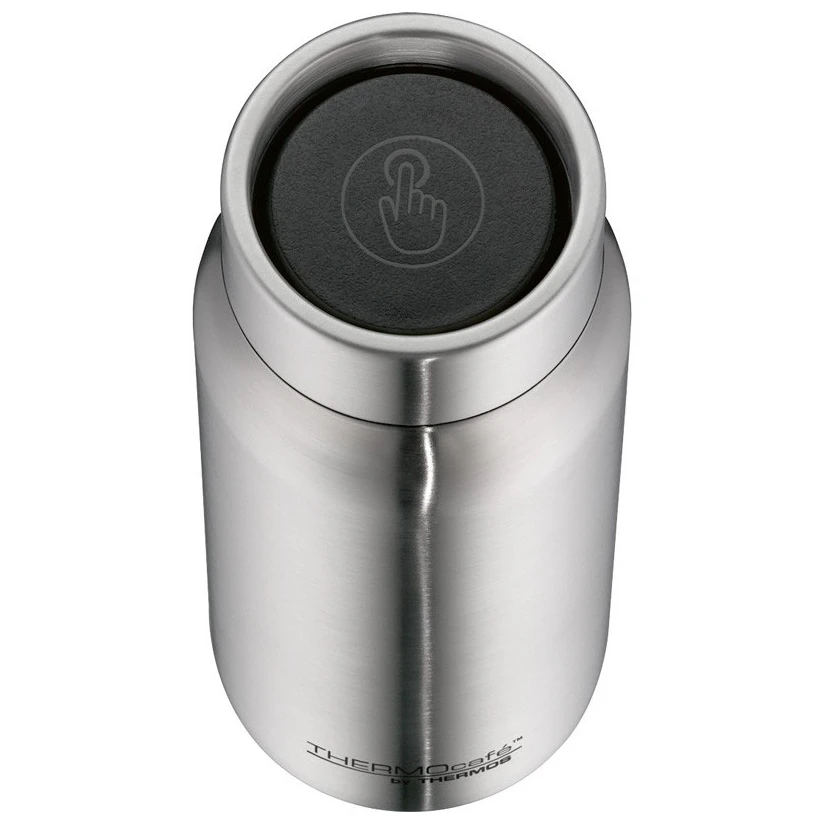 Thermos Thermocafé 500 ml è una borraccia termica leggera e compatta in acciaio inossidabile con isolamento sottovuoto a doppia parete. Grazie alle sue dimensioni, si adatta facilmente alla maggior parte dei portabicchieri per auto ed è la scelta ideale per caffè, tè e bevande fredde durante gli spostamenti o i trasferimenti durante il giorno.