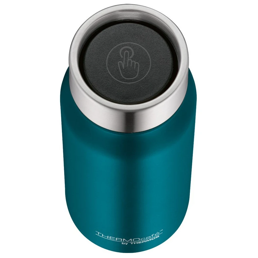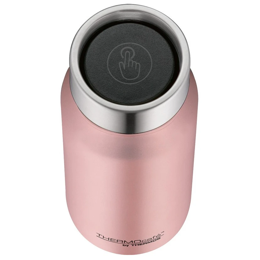 La borraccia termica è dotata di una pratica chiusura a pulsante che consente di aprirla e chiuderla con una sola mano. In stato chiuso, la tazza è a prova di perdite, quindi non devi preoccuparti di fuoriuscite accidentali. La speciale struttura del tappo consente di bere da tutto il bordo del coperchio, il che è particolarmente utile in situazioni in cui è necessario concentrarsi e bere con una sola mano.