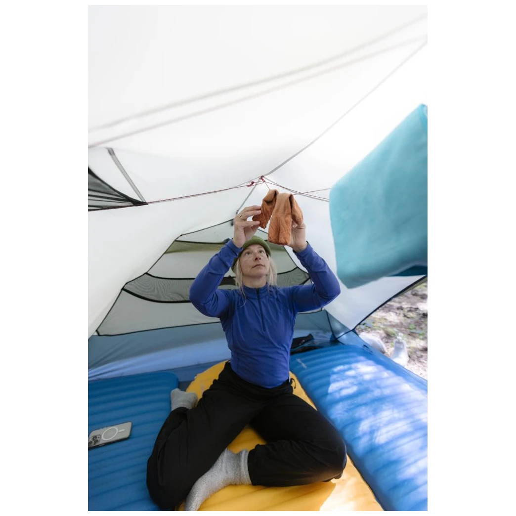 La tenda utilizza pali leggeri e resistenti DAC NSL e una struttura autoportante con un sistema di congiunzione unificato che consente un montaggio rapido e intuitivo. Dettagli pratici come un'ampia tasca sul soffitto, un cordino integrato per asciugare l'attrezzatura o i passacavi nelle tasche migliorano l'organizzazione degli oggetti durante il soggiorno in tenda. Un peso minimo di soli 2,20 kg sarà apprezzato soprattutto durante le spedizioni di più giorni, dove il rapporto tra peso e spazio è importante.