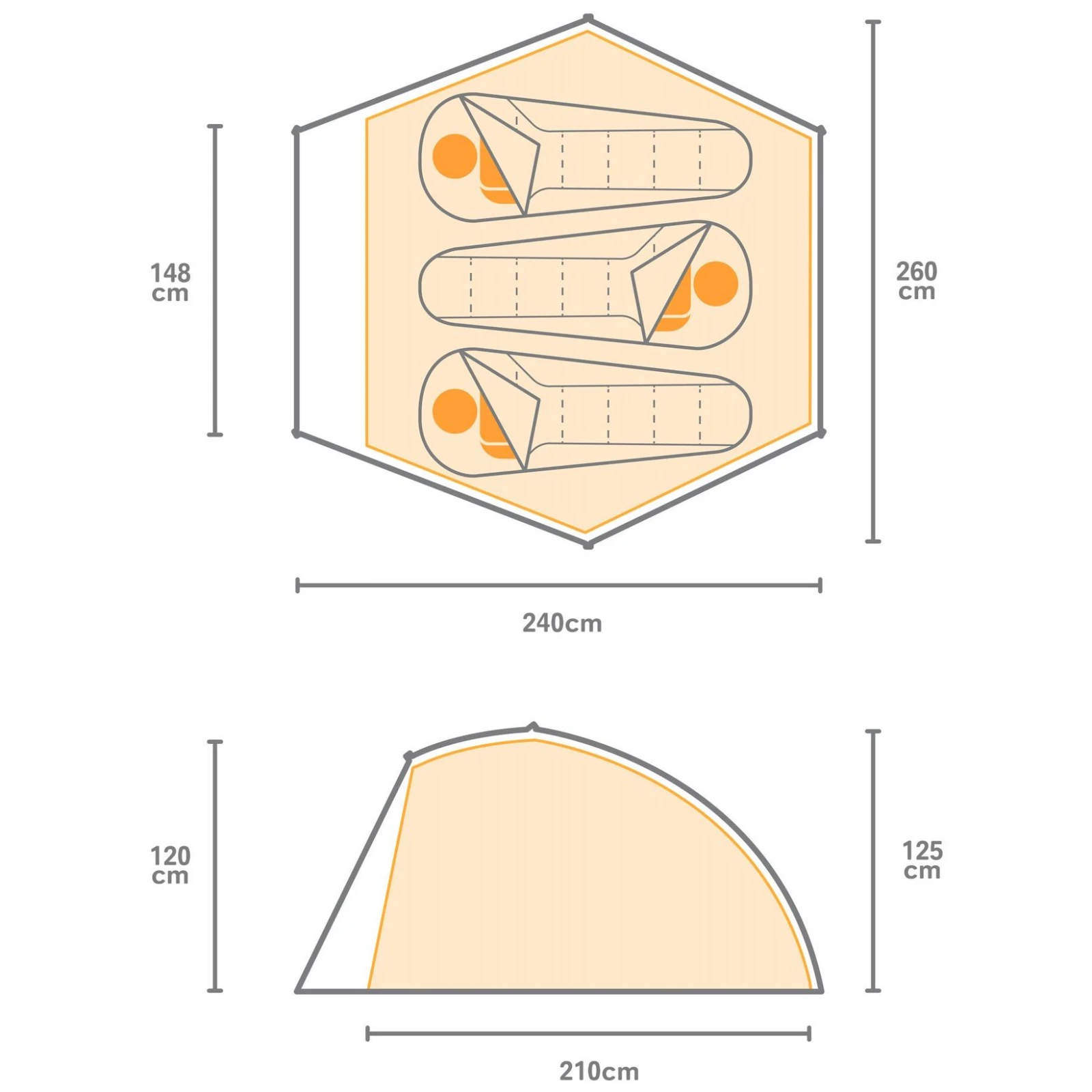 Doppiotetto = la parte esterna di una tenda a doppio telo. Caratterizzato dalla colonna d'acqua = la capacità del materiale di resistere alla pressione dell'acqua. Specificato in millimetri.