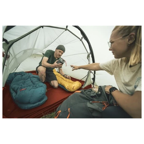 Per una protezione perfetta in qualsiasi condizione atmosferica, ci pensa il doppio telo in tessuto siliconizzato HydroTex SiliPoly RS UL, che non si allenta. Questo materiale ha una colonna d'acqua di 2000 mm e grazie al ripstop è resistente ai danni meccanici. La camera da letto è realizzata in nylon traspirante, il pavimento è in ripstop nylon trattato con poliuretano e ha una colonna d'acqua di 5000 mm. Le cuciture nastratesono una cosa ovvia. I materiali non contengono PFAS.