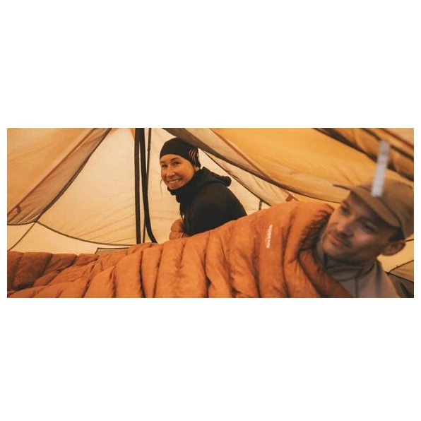 Per una protezione perfetta in qualsiasi condizione atmosferica, ci pensa il doppio telo in tessuto siliconizzato HydroTex SiliPoly RS UL, che non si allenta. Questo materiale ha una colonna d'acqua di 2000 mm e grazie al ripstop è resistente ai danni meccanici. La camera da letto è realizzata in nylon traspirante, il pavimento è in ripstop nylon trattato con poliuretano e ha una colonna d'acqua di 5000 mm. Le cuciture nastratesono una cosa ovvia. I materiali non contengono PFAS.