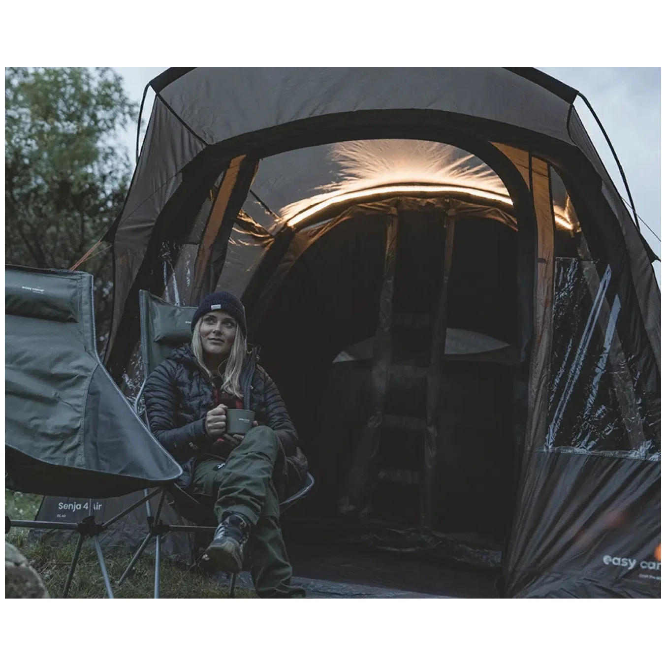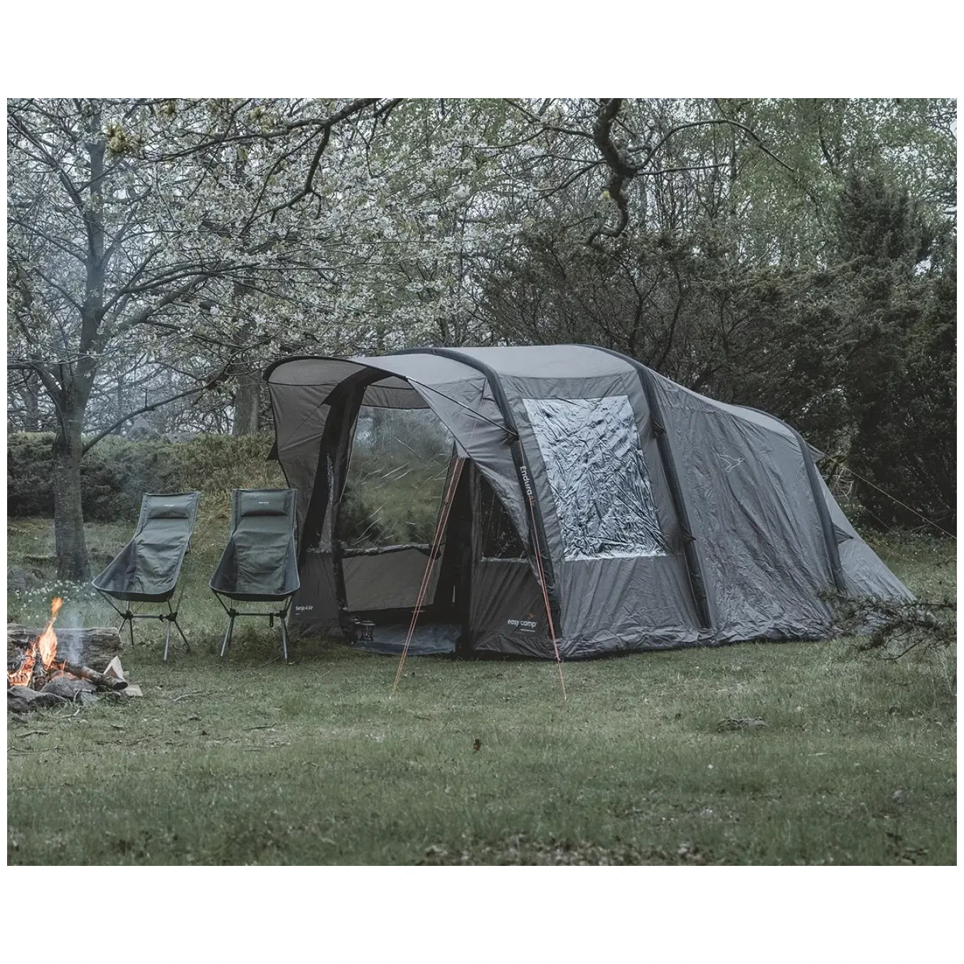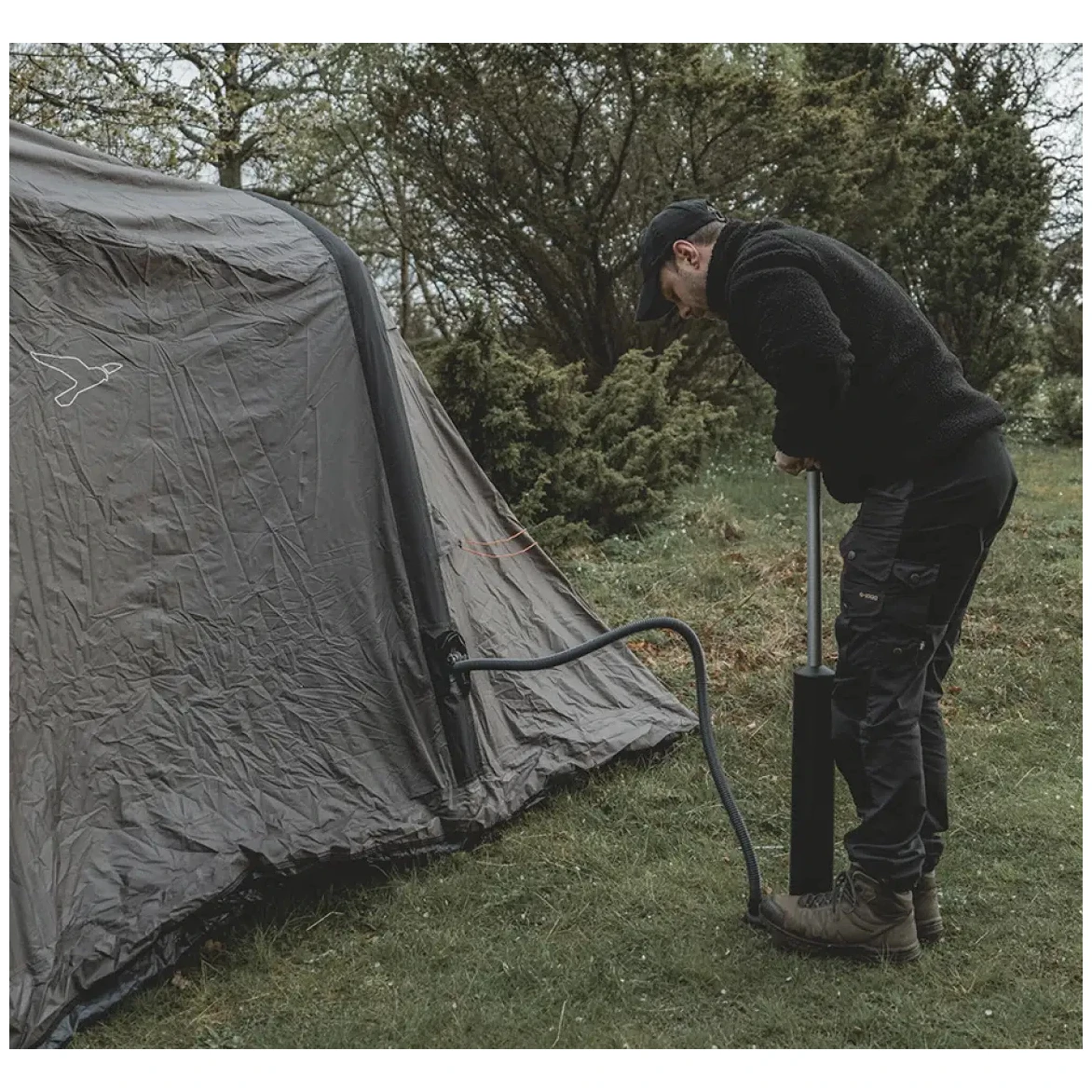 Il montaggio della tenda è molto comodo grazie al sistema EnduraAir: invece dei classici pali, la tenda utilizza tubi gonfiabili in TPU (senza PVC). La tenda è pronta per essere abitata in circa 6 minuti e completamente montata in circa 12 minuti. La fornitura include una pompa, picchetti e uno strumento per le valvole.