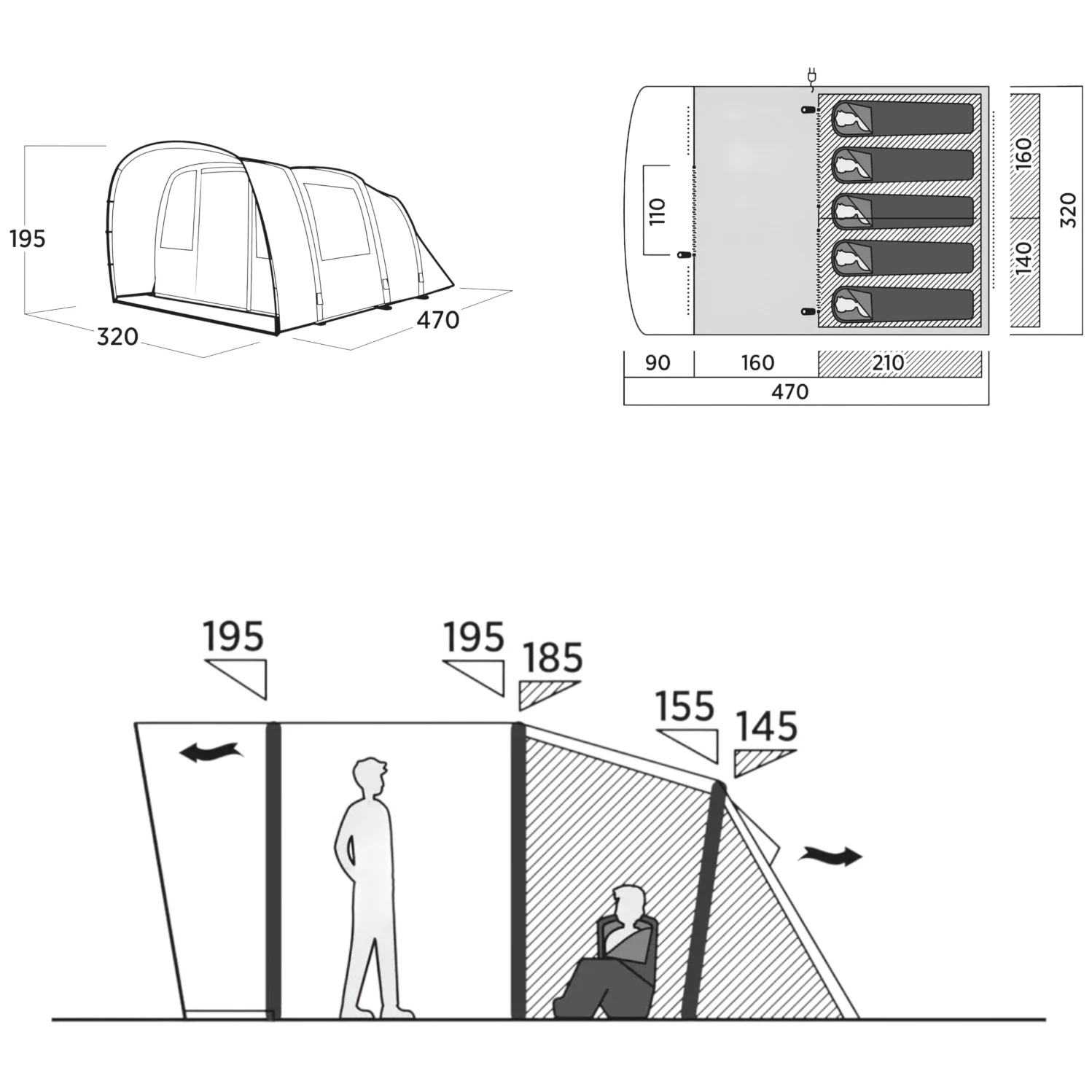 210x320x185/145 cm