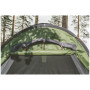 Inoltre, la tenda vanta una buona circolazione dell'aria, grazie al fatto che la parte anteriore e posteriore della tenda possono essere aperte completamente, in modo che l'aria all'interno fluisca intensamente. Inoltre, sono presenti prese d'aria in rete coperte e una camera da letto traspirante.