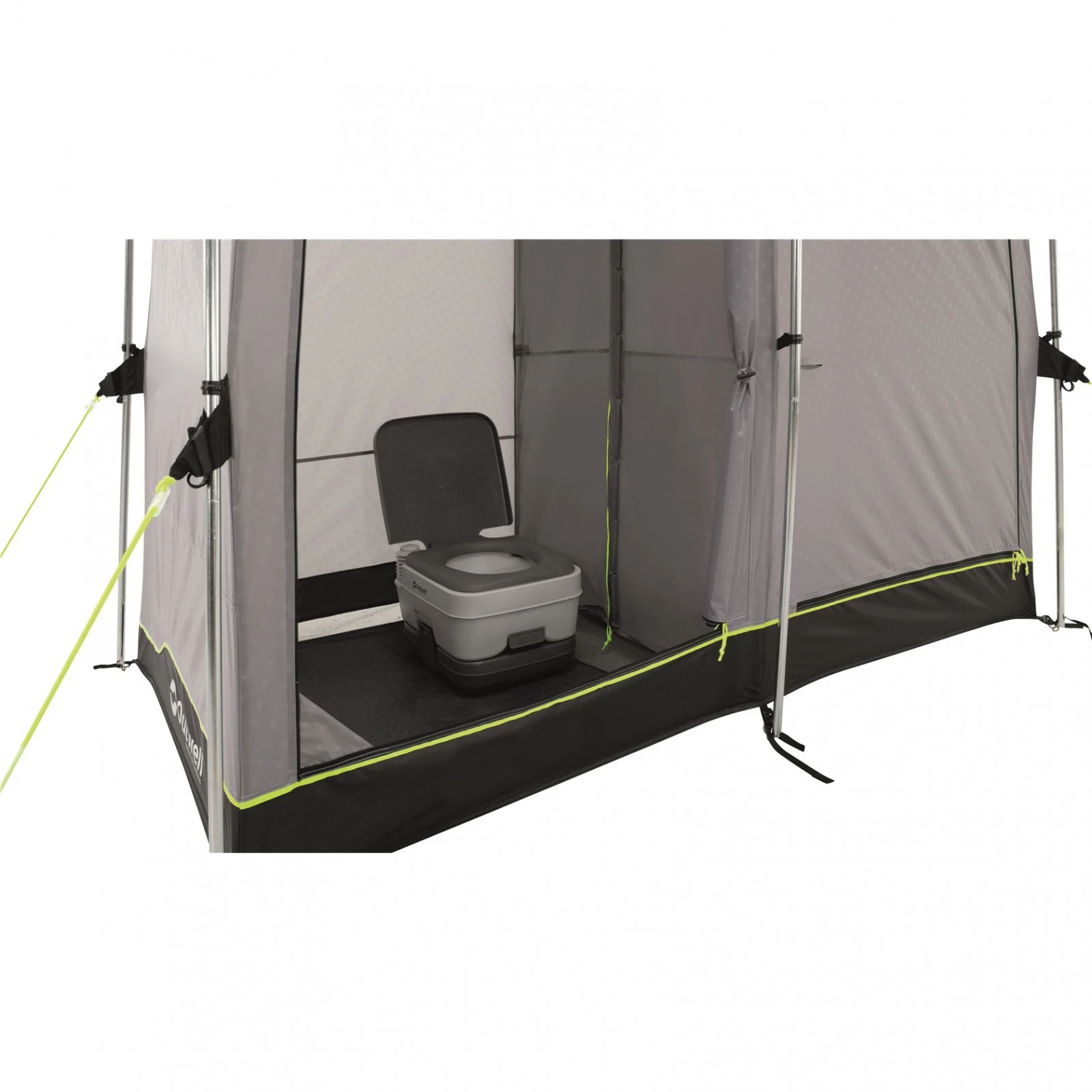 Seahaven Comfort Station Tenda di servizio doppia del marchio Outwell offre una soluzione facile e veloce per creare uno spazio discreto per un bagno chimico e una doccia. La tenda è composta da due cabine, separate da un divisorio con sistema di chiusura magnetica Quick & Quiet. Grazie a questa parete divisoria, è possibile trasformare la seconda cabina in una zona per cambiarsi dopo aver lasciato la doccia.