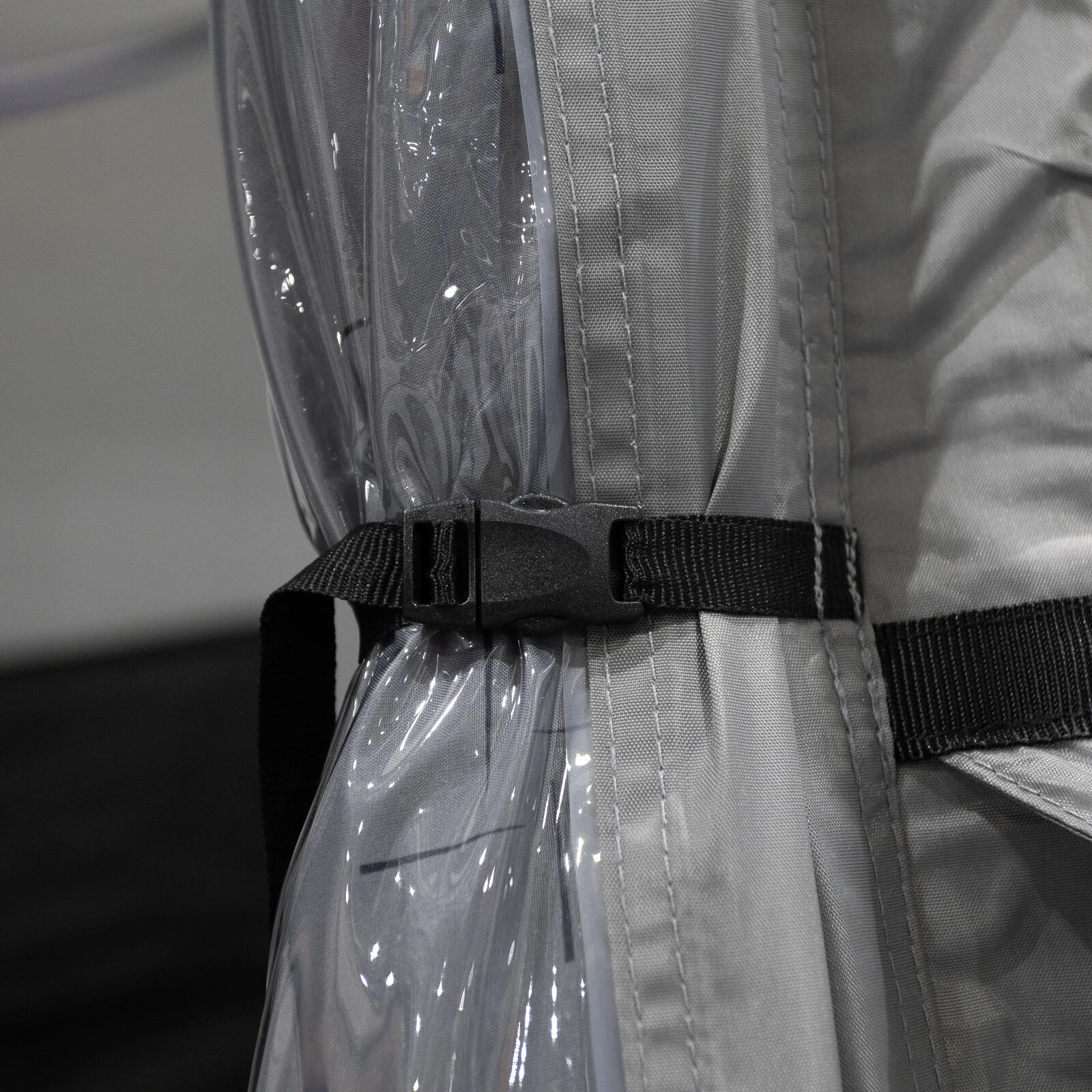 Il leggero ma resistente tessuto Elements Shield 150D con una colonna d'acqua di 5.000 mm garantisce una protezione affidabile contro pioggia e intemperie, mentre tecnologia ColourLok aiuta a mantenere i colori stabili anche con un uso frequente. Le grandi finestre Diamond Clear offrono una vista eccellente sui dintorni e abbondante luce diurna, mentre le tende con zip consentono una facile regolazione della privacy secondo necessità.