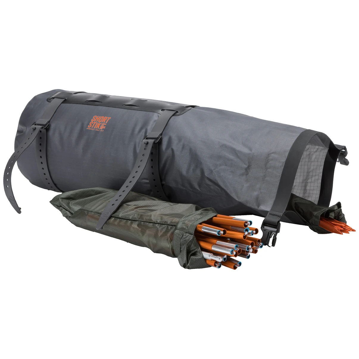 La tenda è realizzata con resistenti materiali riciclati ed è trattata con una finitura impermeabile priva di PFAS, quindi è rispettosa dell'ambiente. Il doppio tetto principale è realizzato in materiale brevettato HyperBead™ in nylon ripstop. Naturalmente, le cuciture sono nastrate (senza PVC). La struttura è composta da robusti pali in leggero materiale DAC Featherlite NSL con tecnologia ShortStik, grazie alla quale la tenda sarà montata in pochi minuti. Questi pali sono accorciati in modo da poter essere inseriti sul manubrio, sul telaio o nelle borse della bicicletta quando sono imballati. Il collare trasversale stampato a iniezione in TPU garantisce un fissaggio sicuro delle punte dei picchetti della tenda.